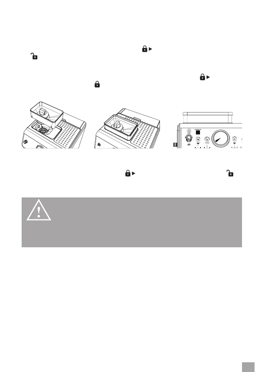 3. Insert the hopper into the machine and turn the lock clockwise until the