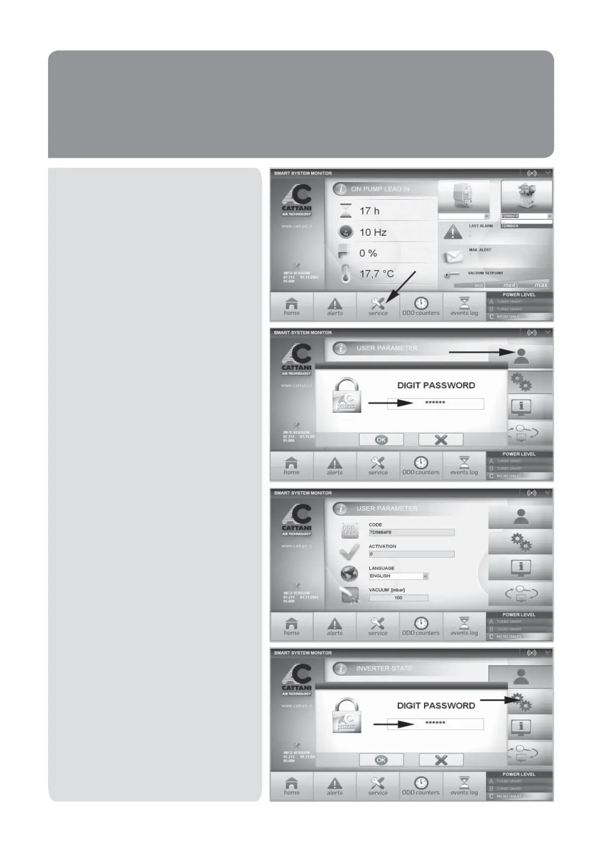 Haciendo click en el icono SERVICE se podrá