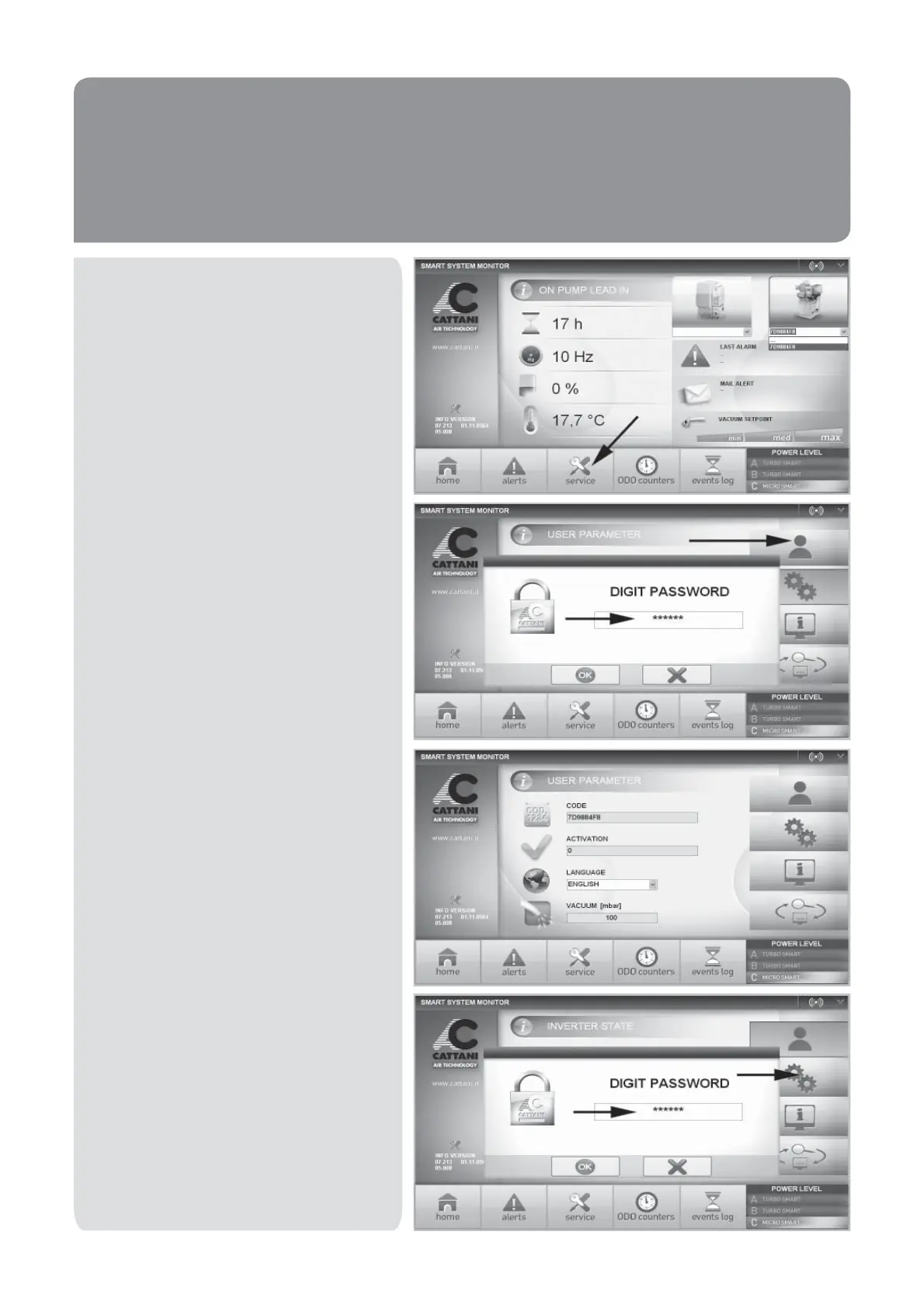 Cliccando sull’icona SERVICE si potrà