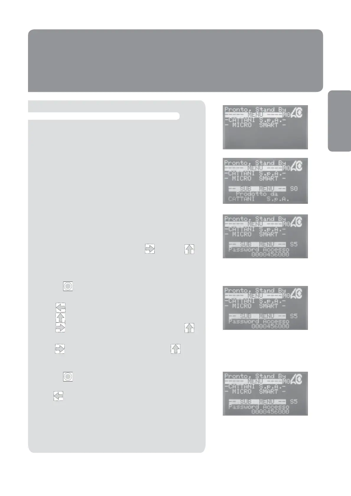 From the CATTANI S.p.A. menu, press and then .