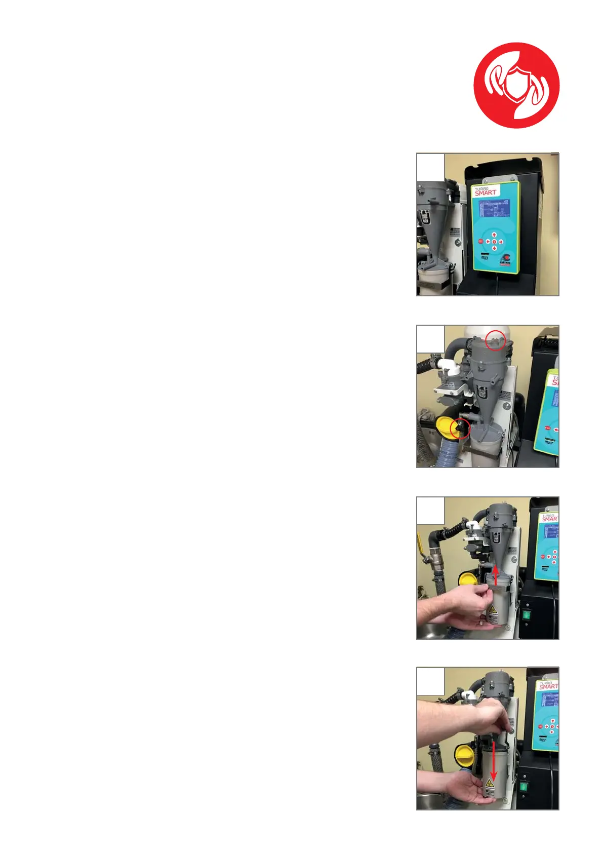 3. Gently hold the collection container and slowly lift the