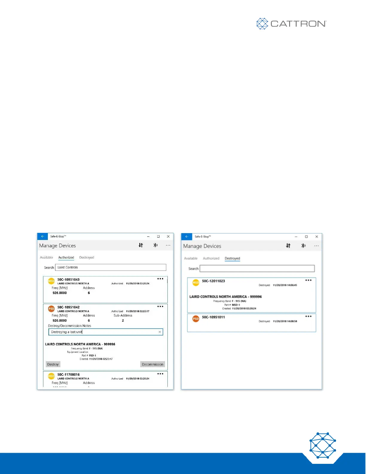 This can be achieved by selecting units from the ‘Authorized’ tab and clicking the ‘Decommission’ button. Confirm