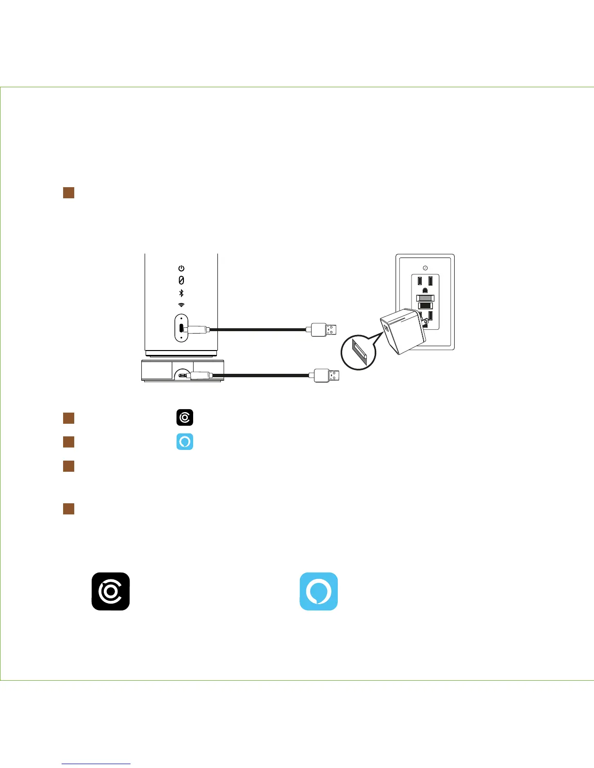 Plug included USB-C cable into USB charging port on back of unit OR on the