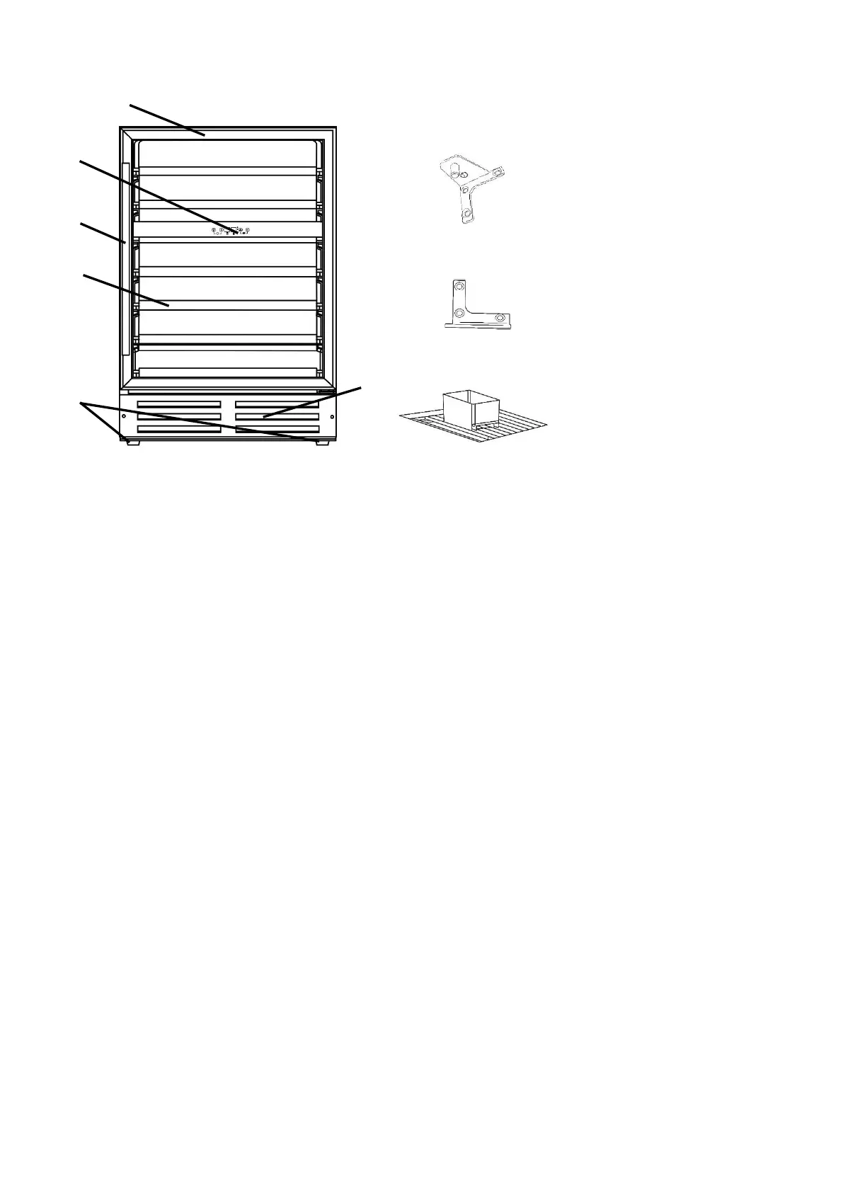 Avant d’installer la cave, vérifiez que toutes les pièces de l’appareil indiquées dans le schéma soient présentes.