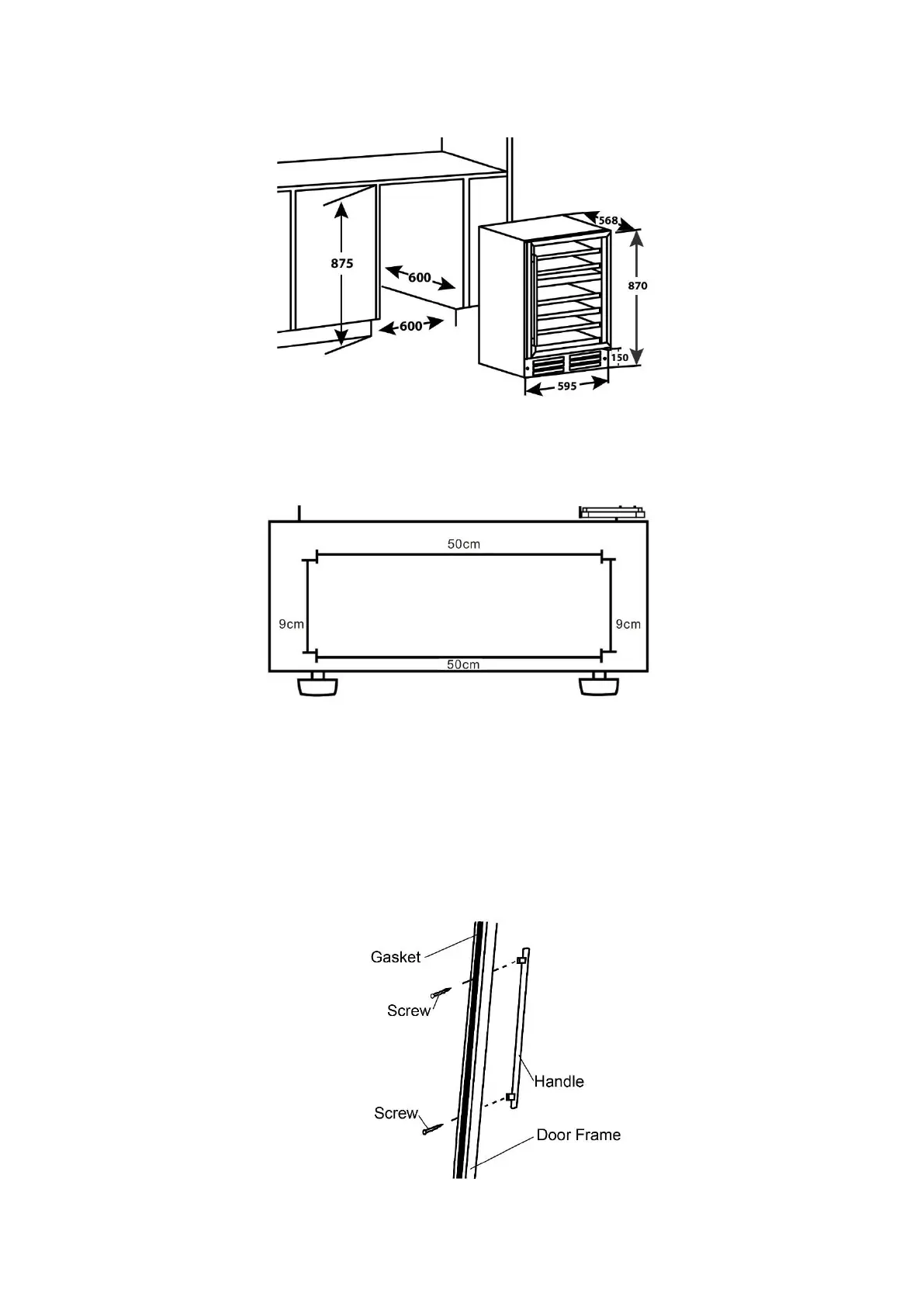1. Ouvrez la porte et déplacez légèrement le joint sur le côté pour voir les deux trous de la poignée.