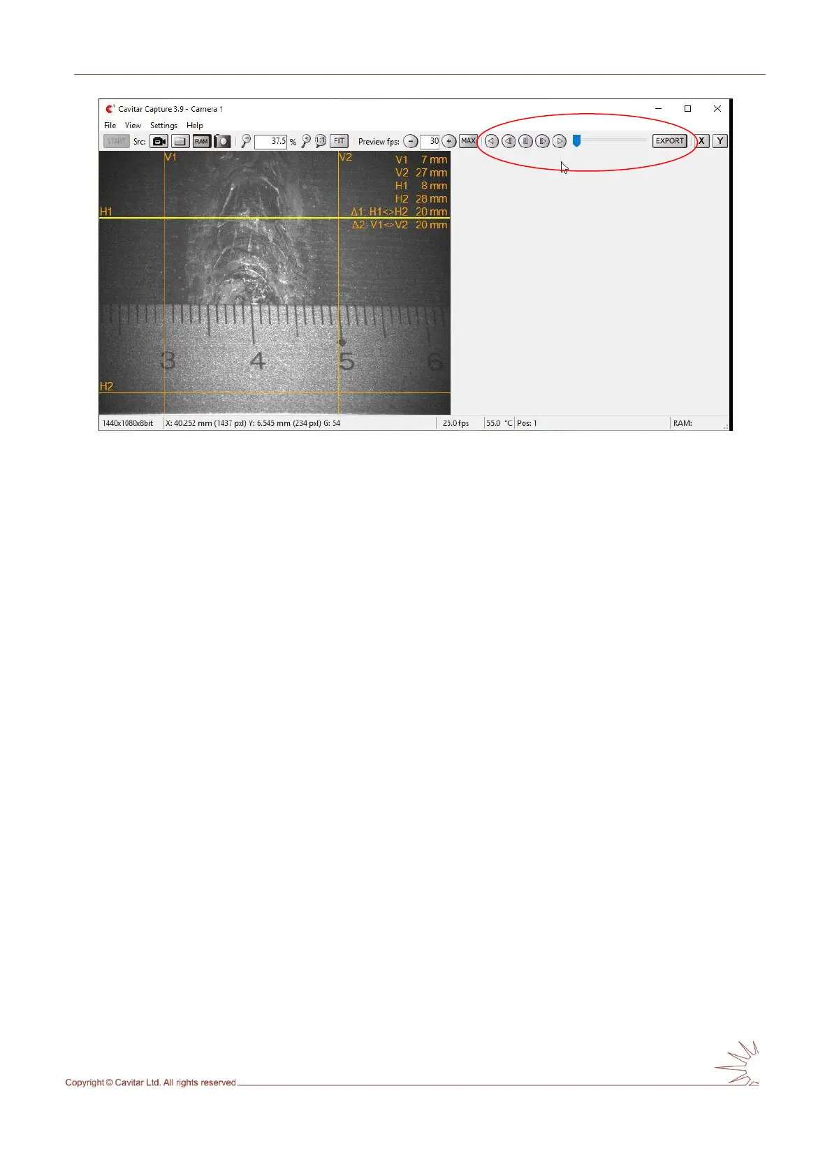 The image player controls for viewing recorded images as well as the “Export” button for