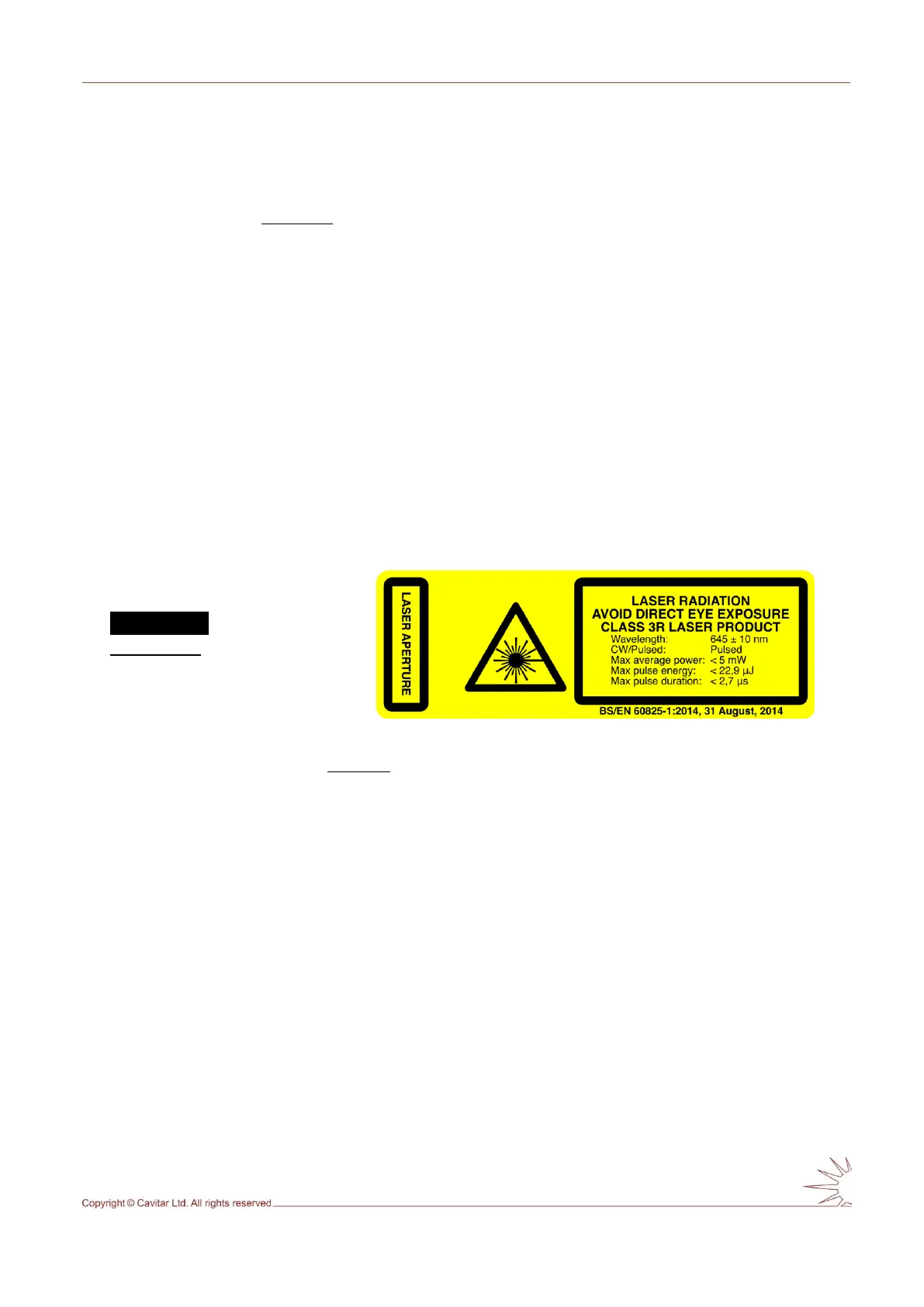 o camera unit emits visible red laser light at 645 ± 10 nm wavelength band