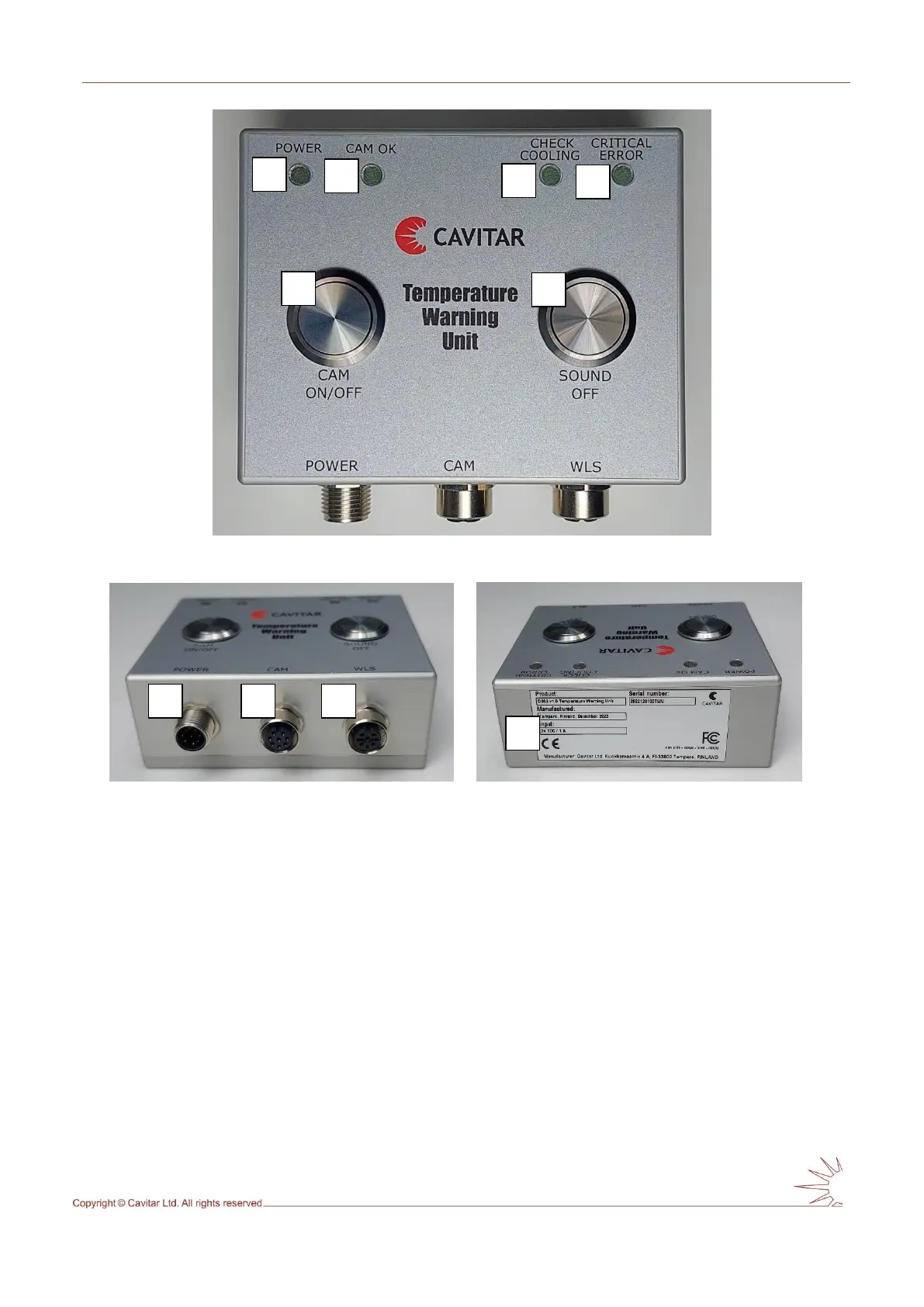 Fig. 3.6. Temperature warning unit (front view). Fig. 3.7. Temperature warning unit (back view).