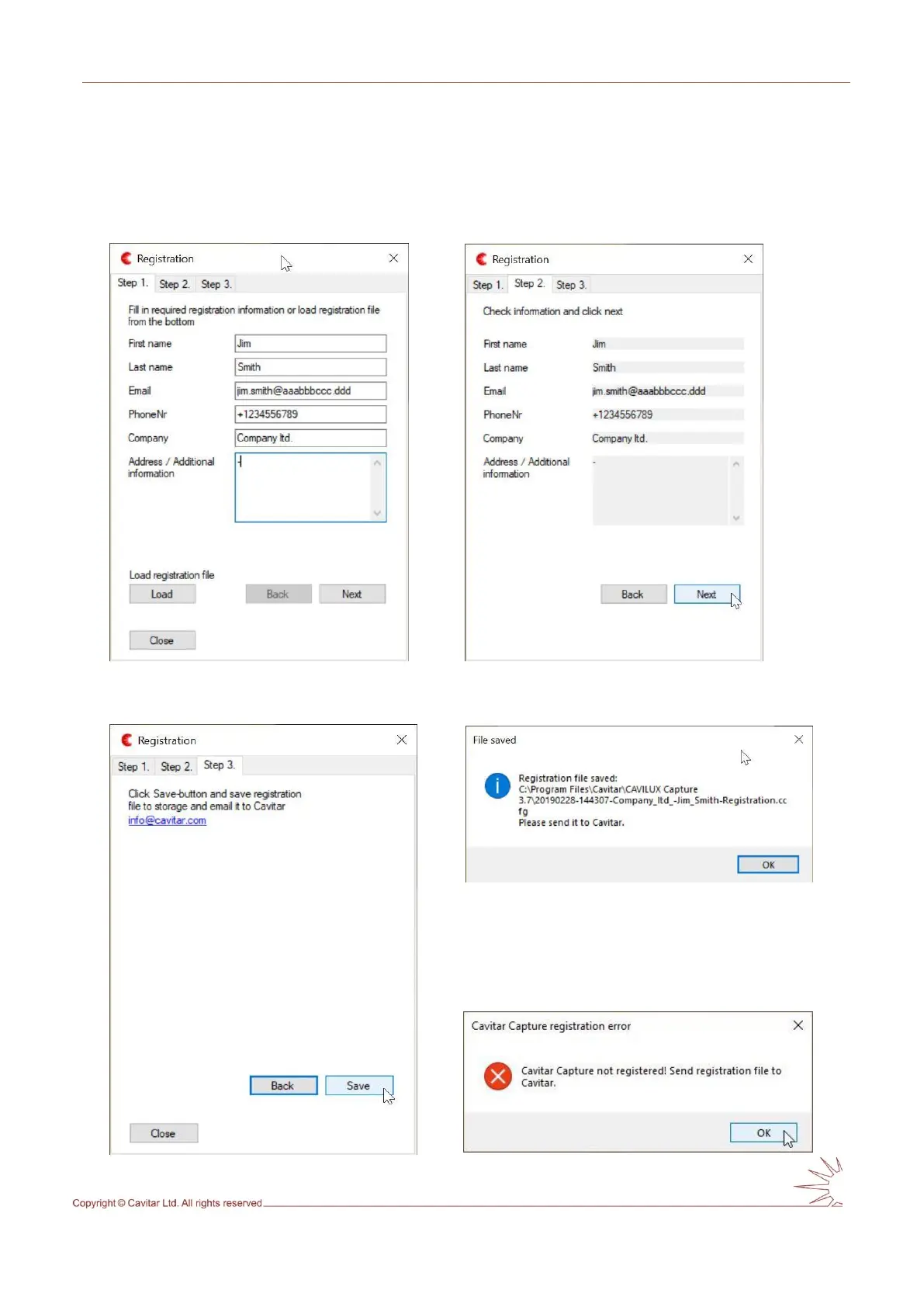 When starting CAVITAR Capture for the first time, registration procedure will start (see Figs.