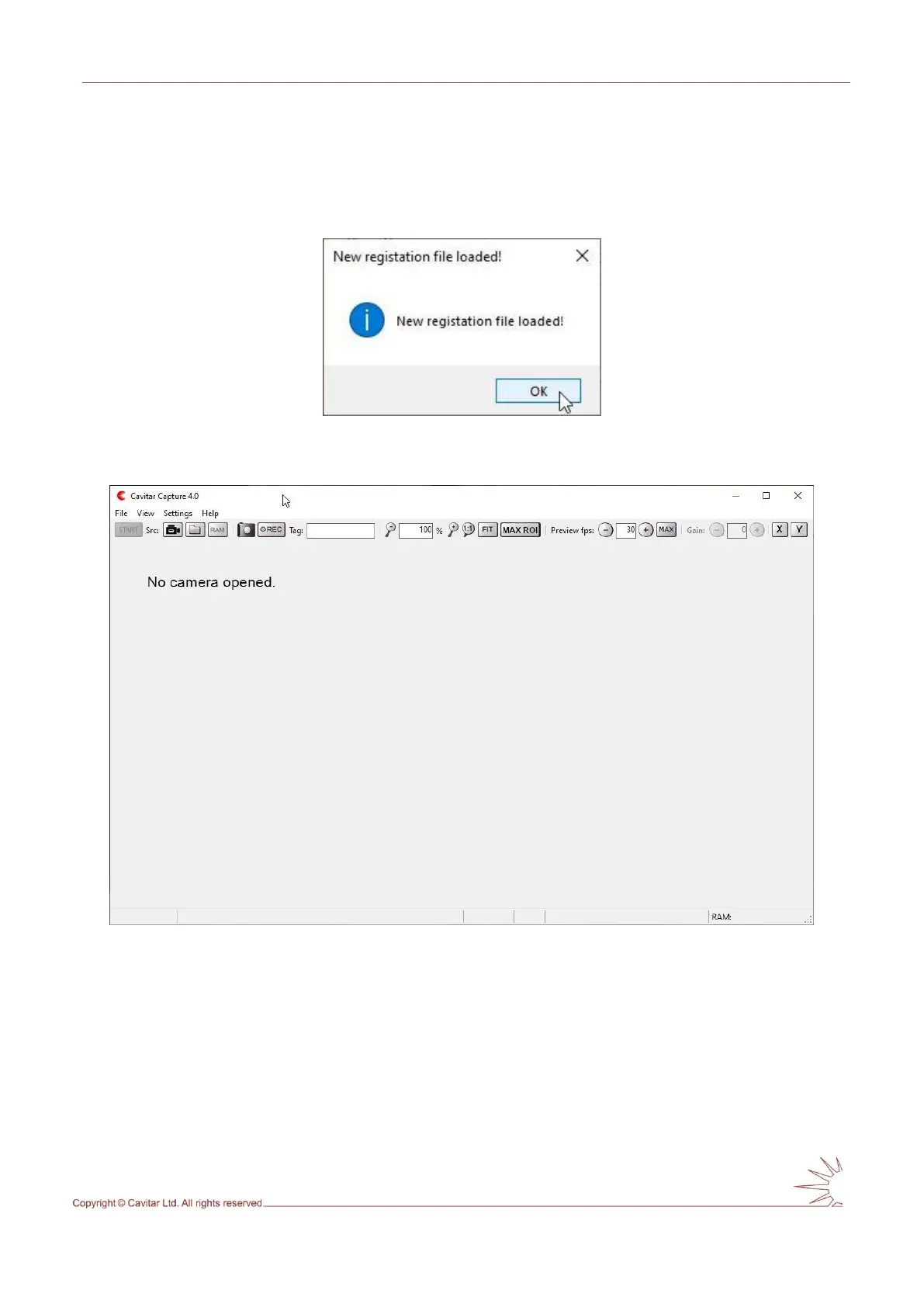 After receiving the registered file from your vendor or Cavitar, start CAVITAR Capture. The
