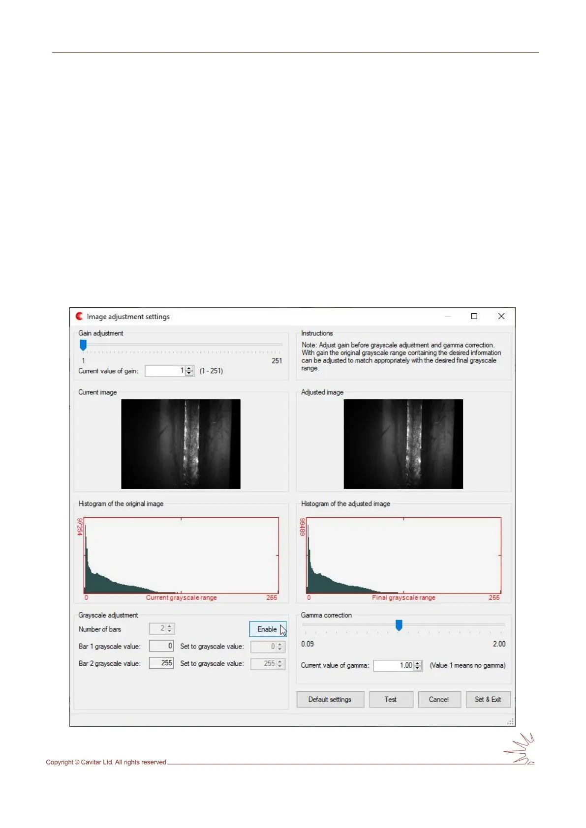 adjustment window can be opened by selecting “Image Adjustment…” from “Settings” menu.