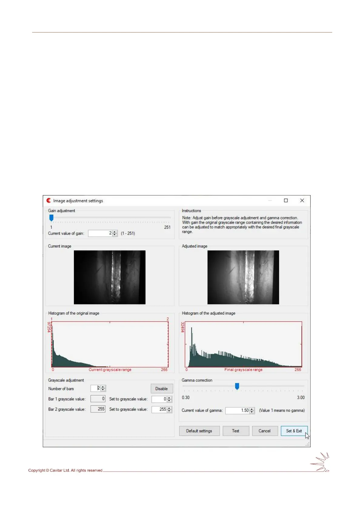 Fig. 5.14. Effect of applying gain and gamma correction (after pressing “Test”).