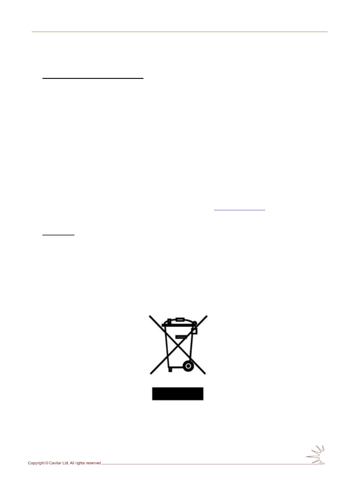 be returned to your vendor or to Cavitar for proper disposal at the end of their life.