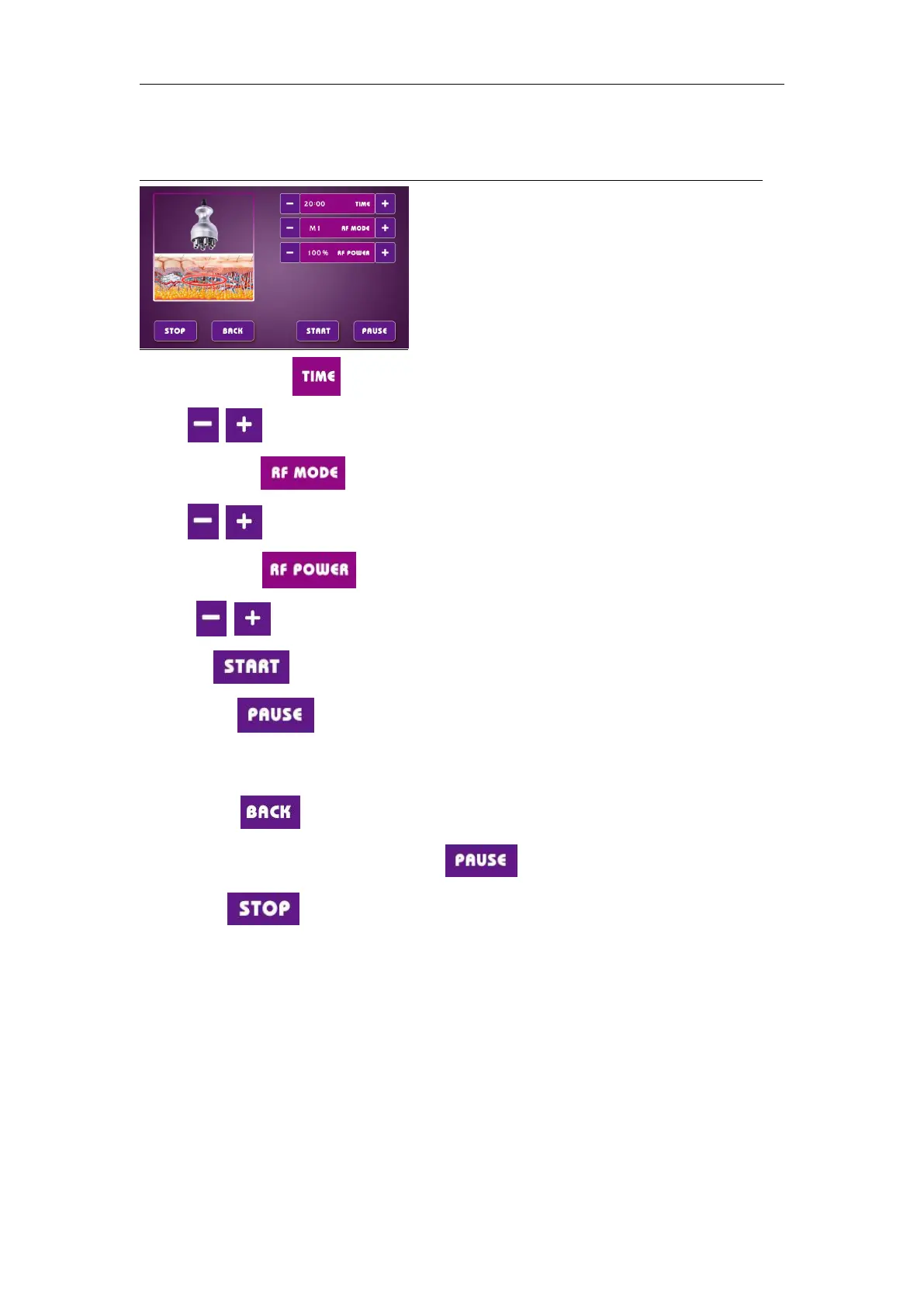 4.:touch it to start the treatment after all the parameter ajusted.