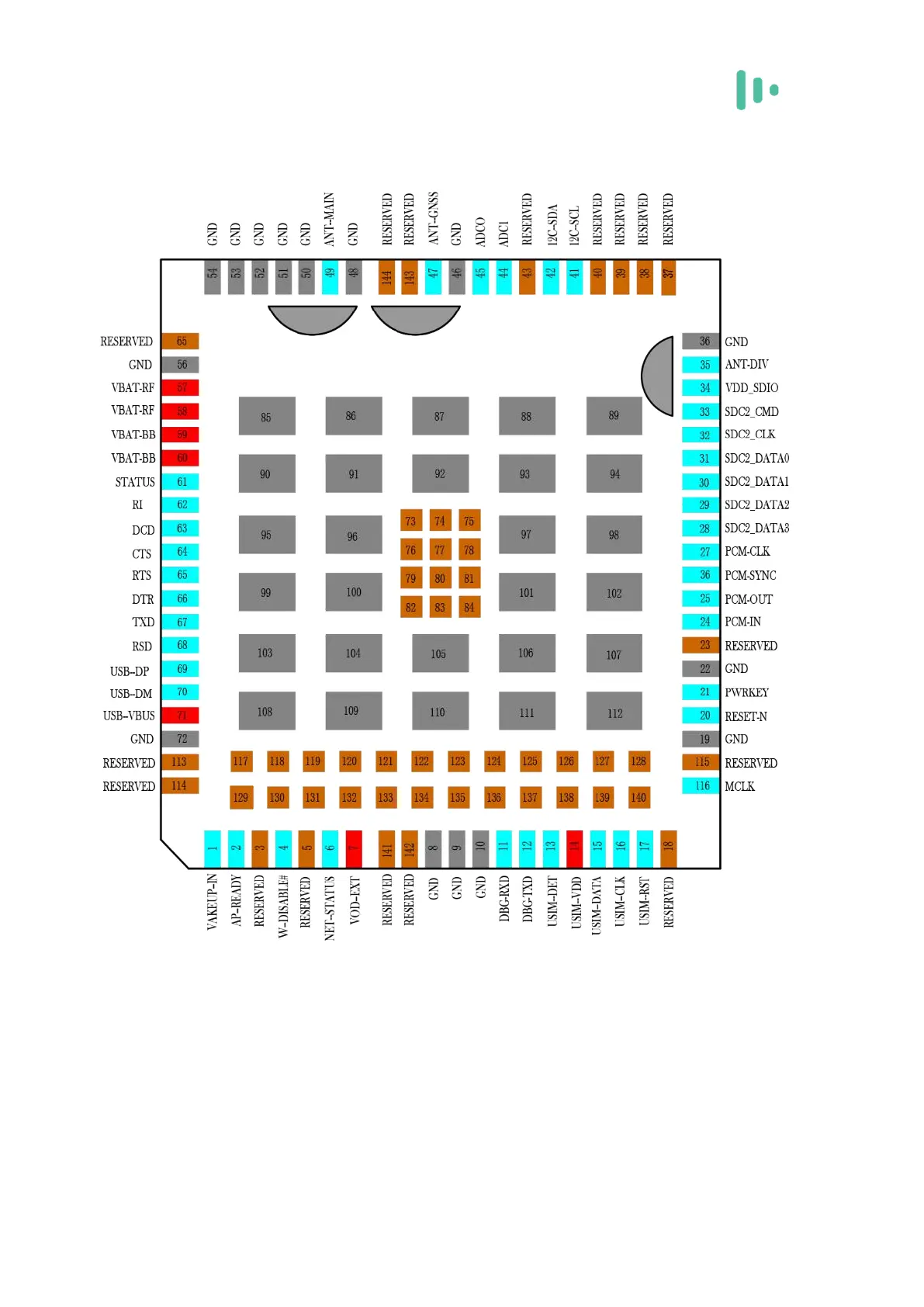 Cavli Wireless C100QM - 3.2.1 144-pin LCC Interface; 3.2.2 Interface Definition