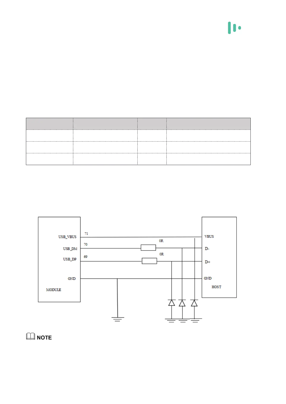 The USB interface of the C100QM/C10QM module provides a USB2.0 High-Speed