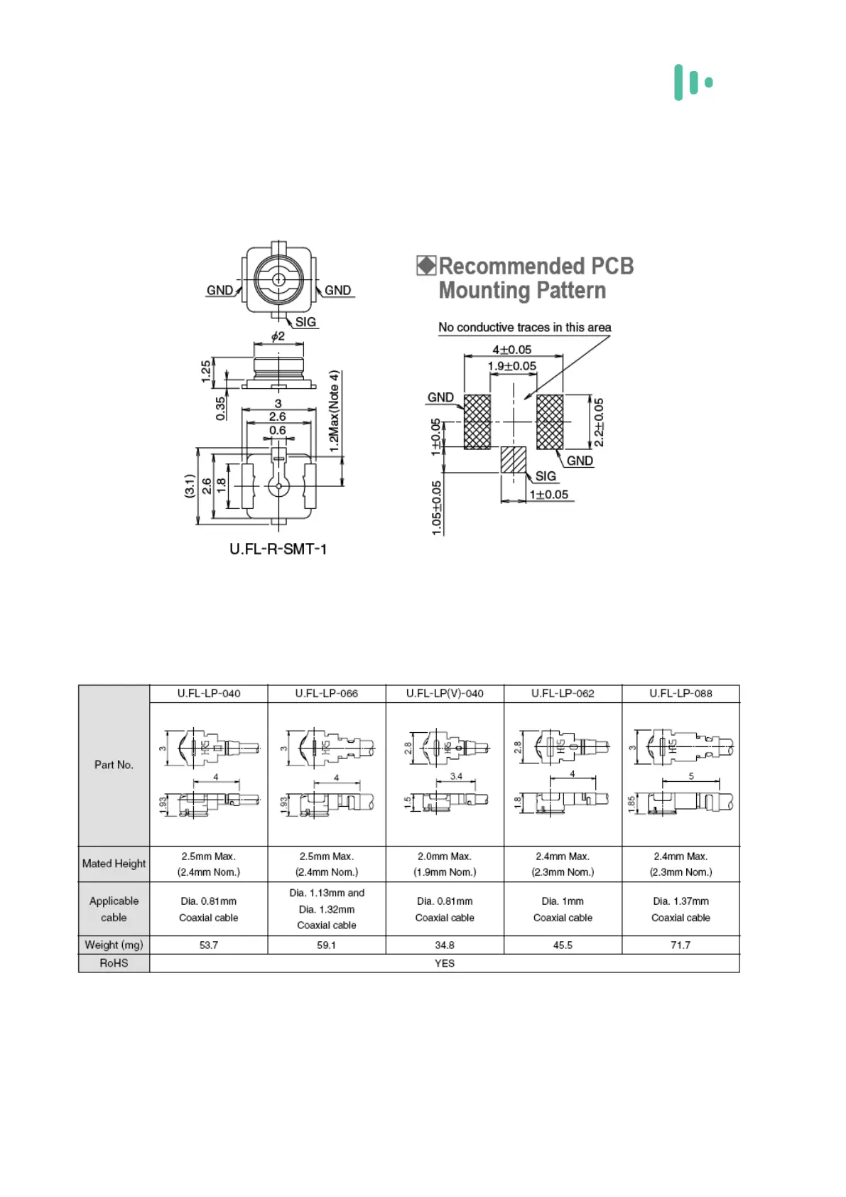 ✧ Hirose's UF.L-R-SMT connector is recommended.