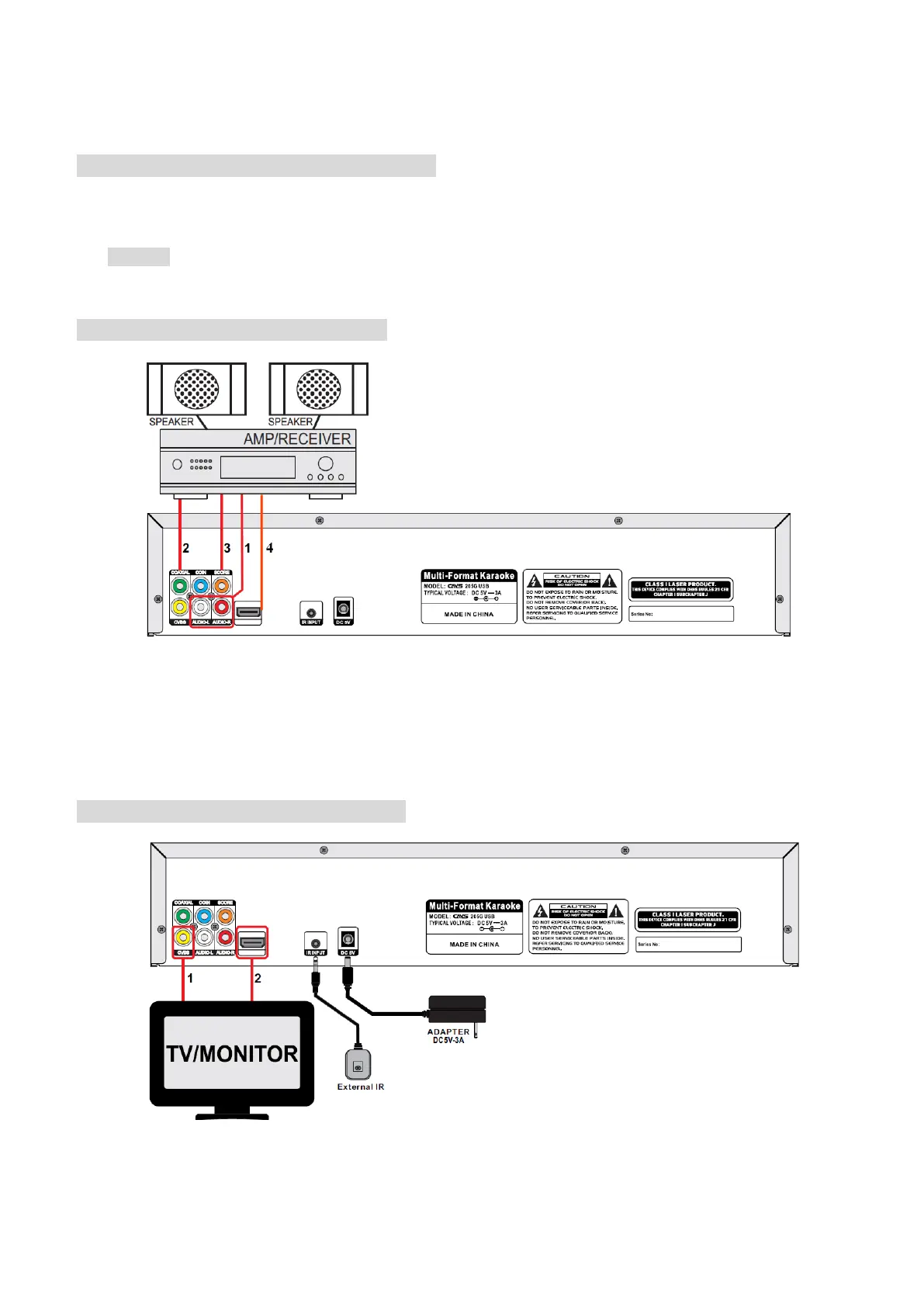 1. Connect Audio L/R to the amplifier. When the player is connected with microphone, the audio output contains