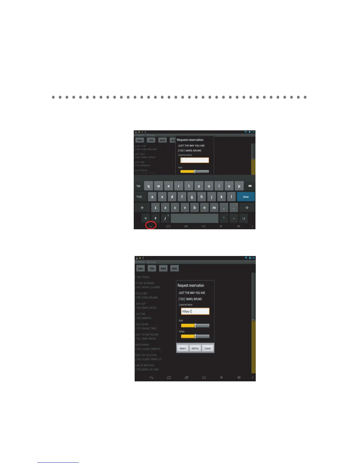 - Tab on a song and the following popup will appear. Use the on-screen keyboard to type in the