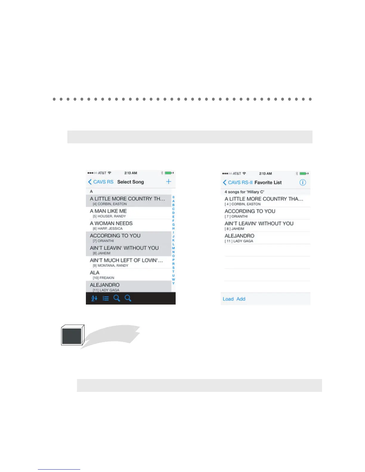 The new Favorite list will appear. To add songs, press Add, the song book will appear. You