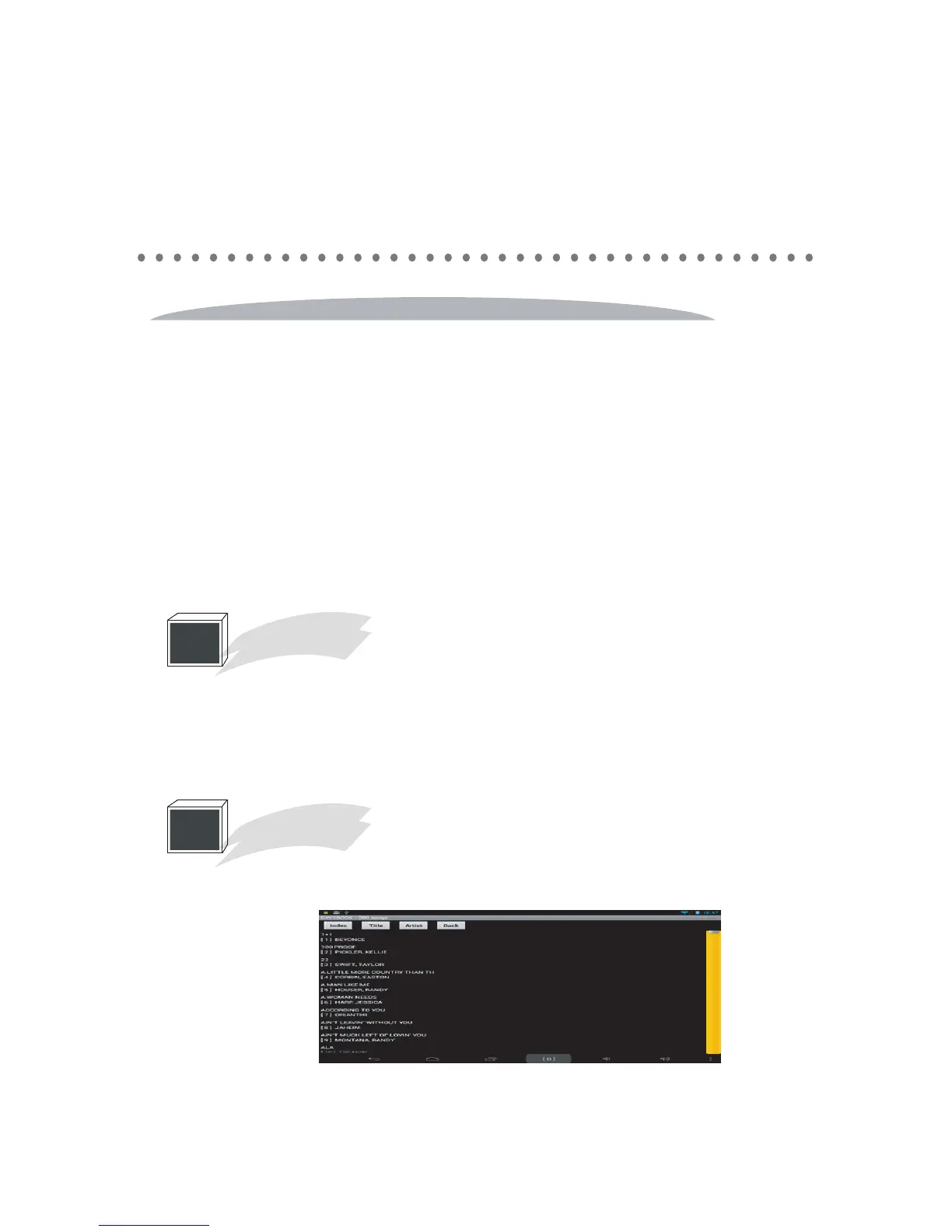 on Index, Title, or Artist button.