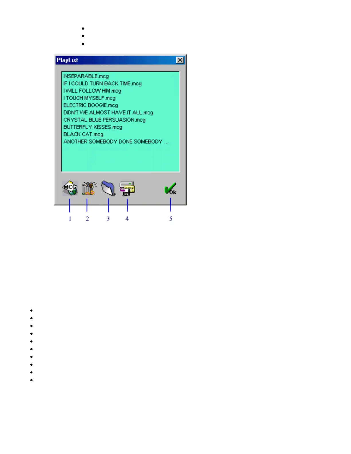 1. Browse for song files *.mcg or *.cdg (RW files).