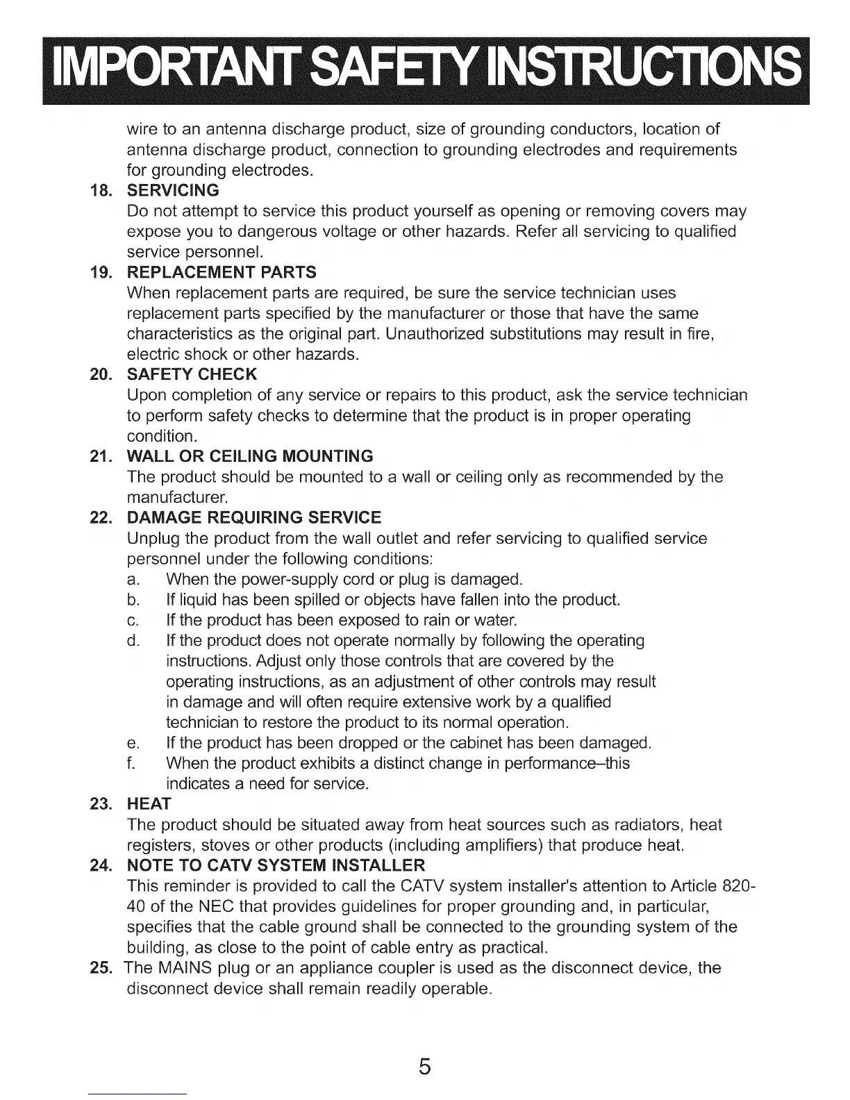 expose you to dangerous voltage or other hazards. Refer all servicing to qualified