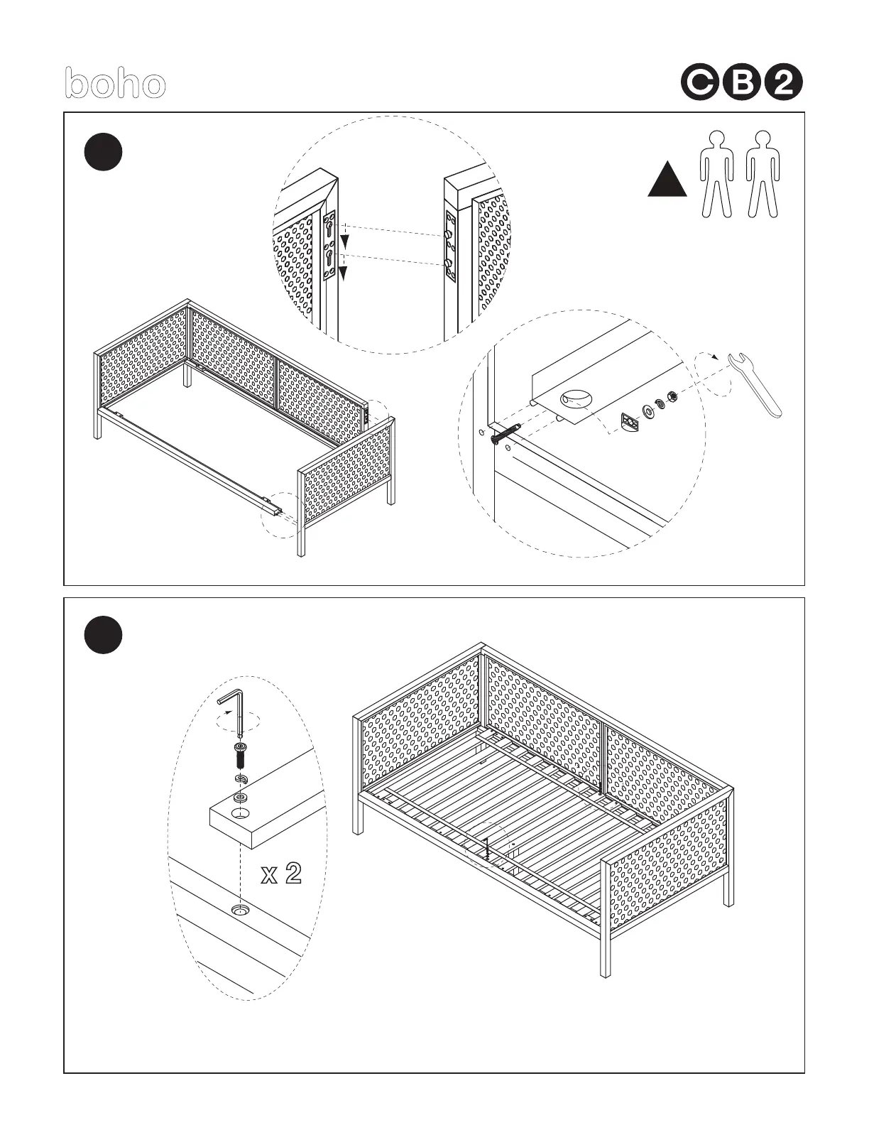 CB2 BOHO - Assembly Step 5; Installing Main Supports; Assembly Step 6; Attaching Bed Slats