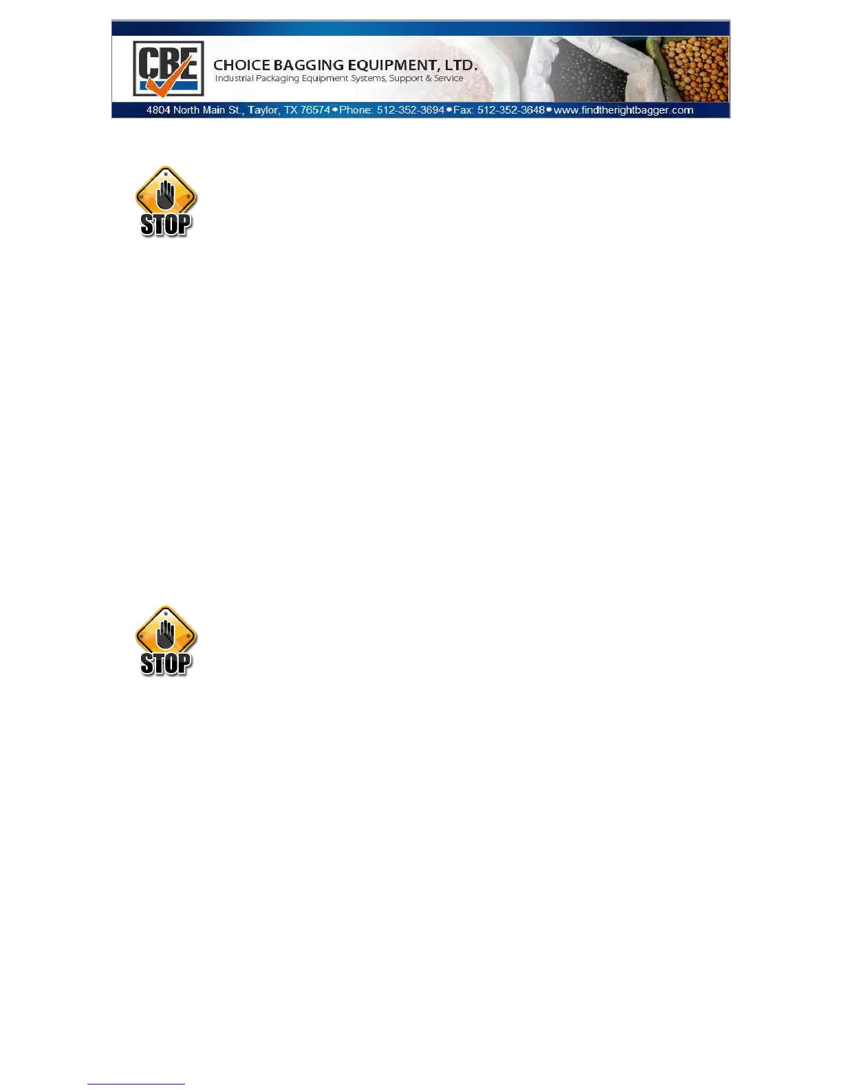 For equipment not manufactured by Choice Bagging Equipment, Ltd see appropriate Manufacturer’s