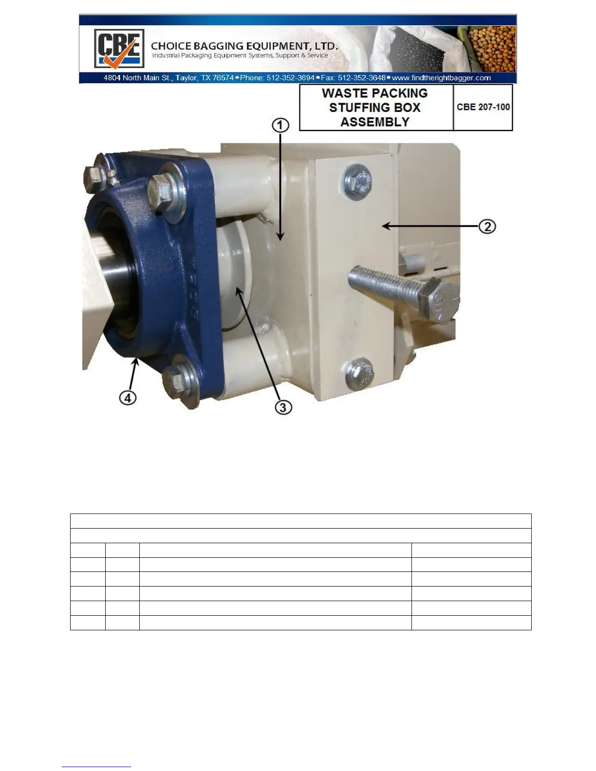 CBE 207-100 PARTS LIST