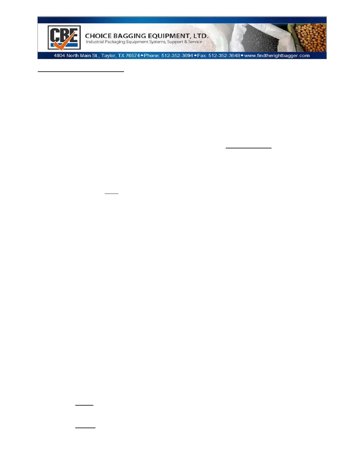 NOTE: When bagging light, fluffy powders, it is necessary to use a bag densifier to