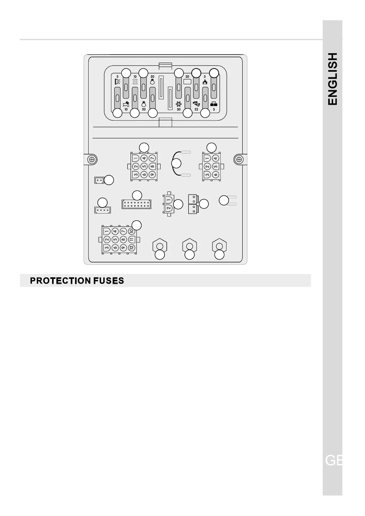 5) 20A fuse to give power to the lights group “B”, it depends on the lights switch (PC200) or on the main