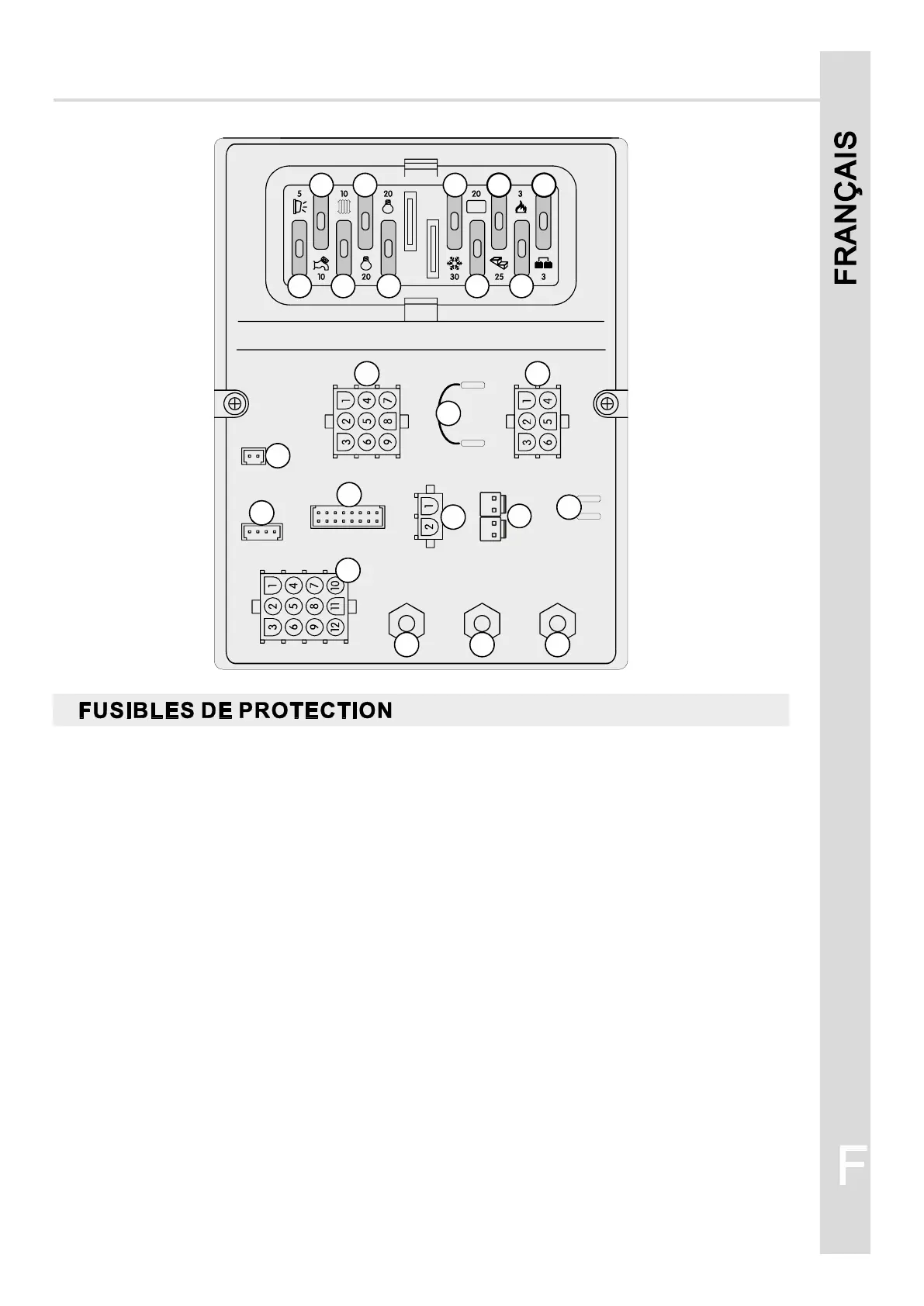 8) Fusible 25A pour l’alimentation du marche-pied électrique, il dépend directement de la batterie service