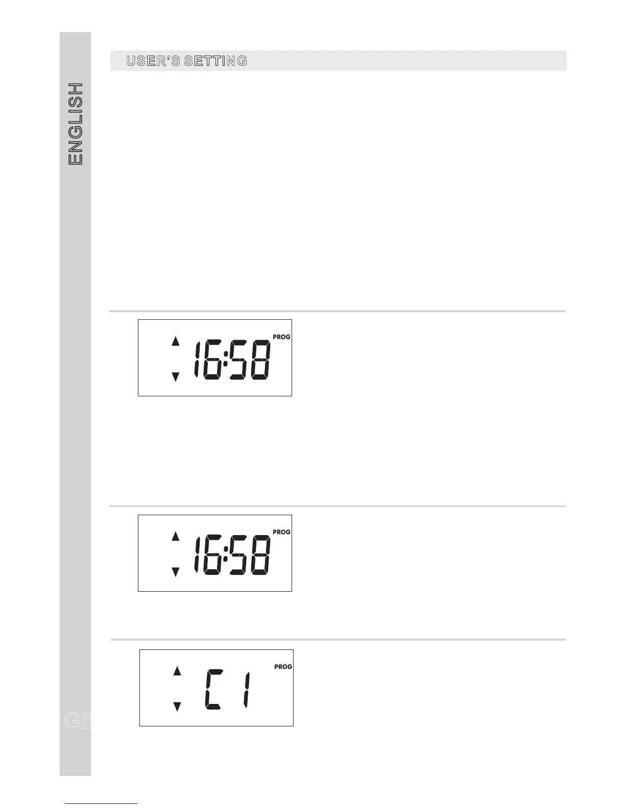 Confirm the setting by pushing the “PROG” button (ref. ), you then go automatically to next parameter.