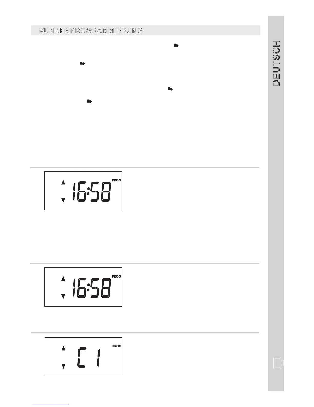 Vom Startseite (wo die Uhr angezeigt wird), den Taster “PROG ” Bez. 1 mehr als 2 Sekunden gedrückt