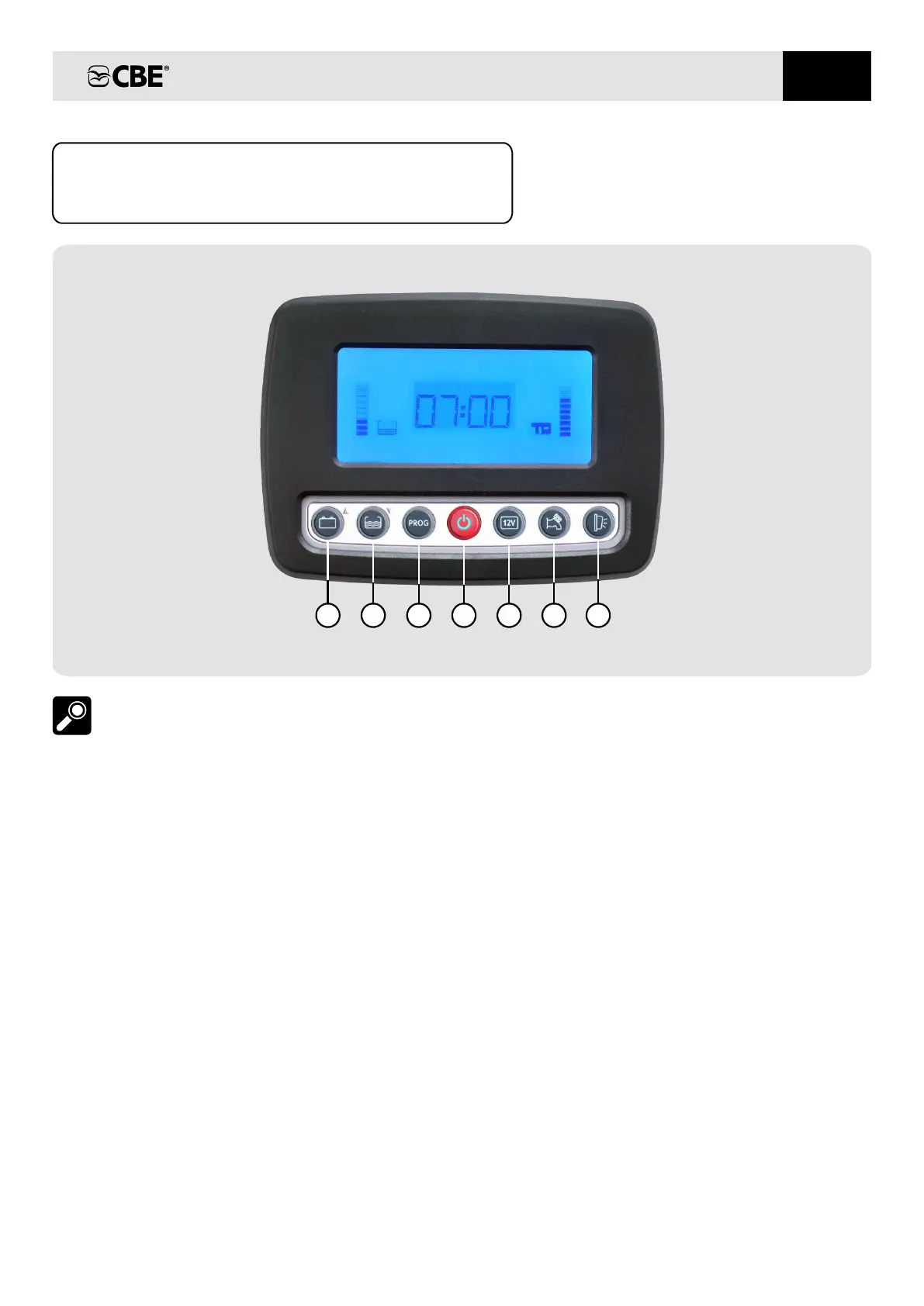 1) Button for control of car and leisure batteries