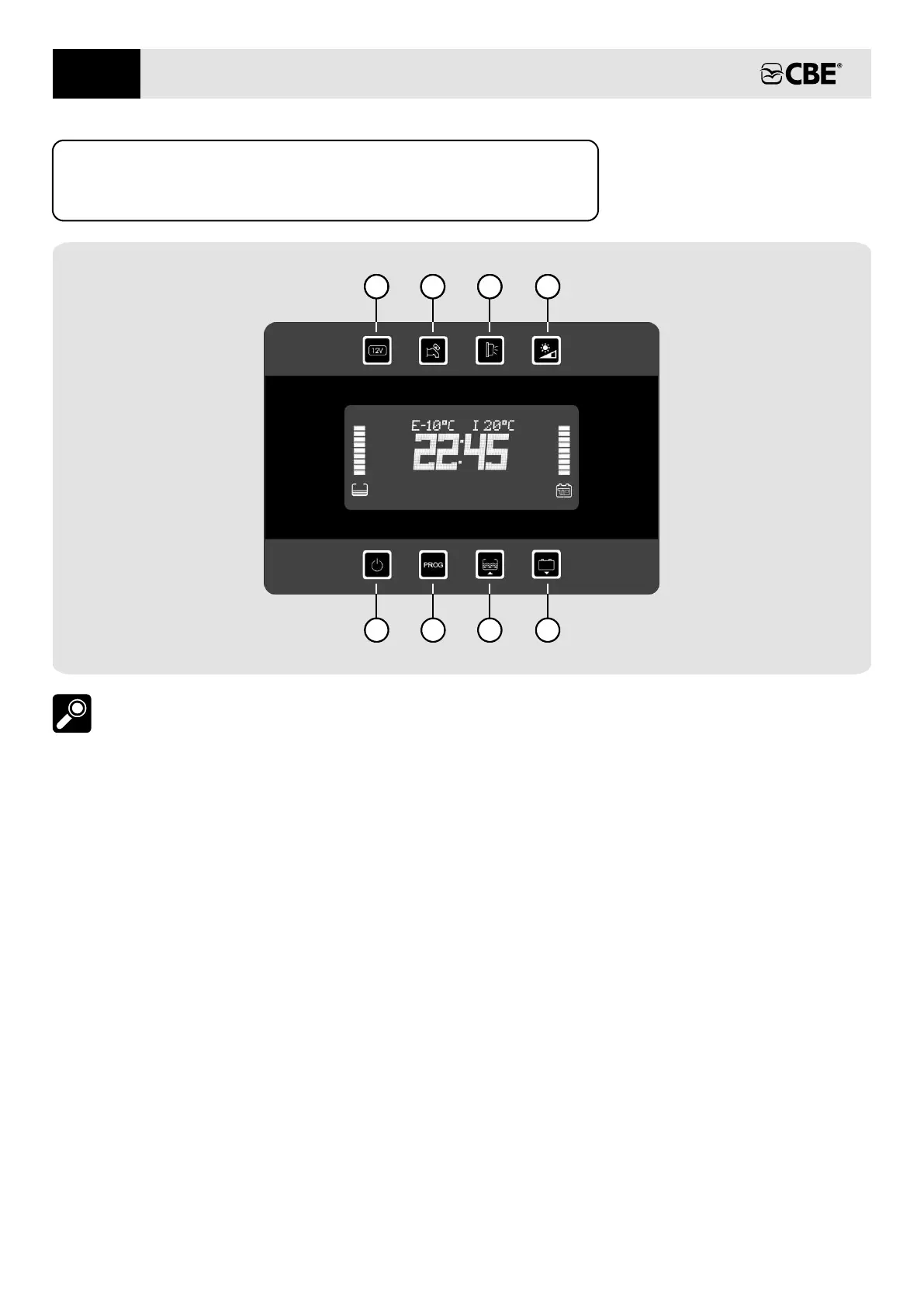 1) Pulsante 12V (luci e luce esterna).