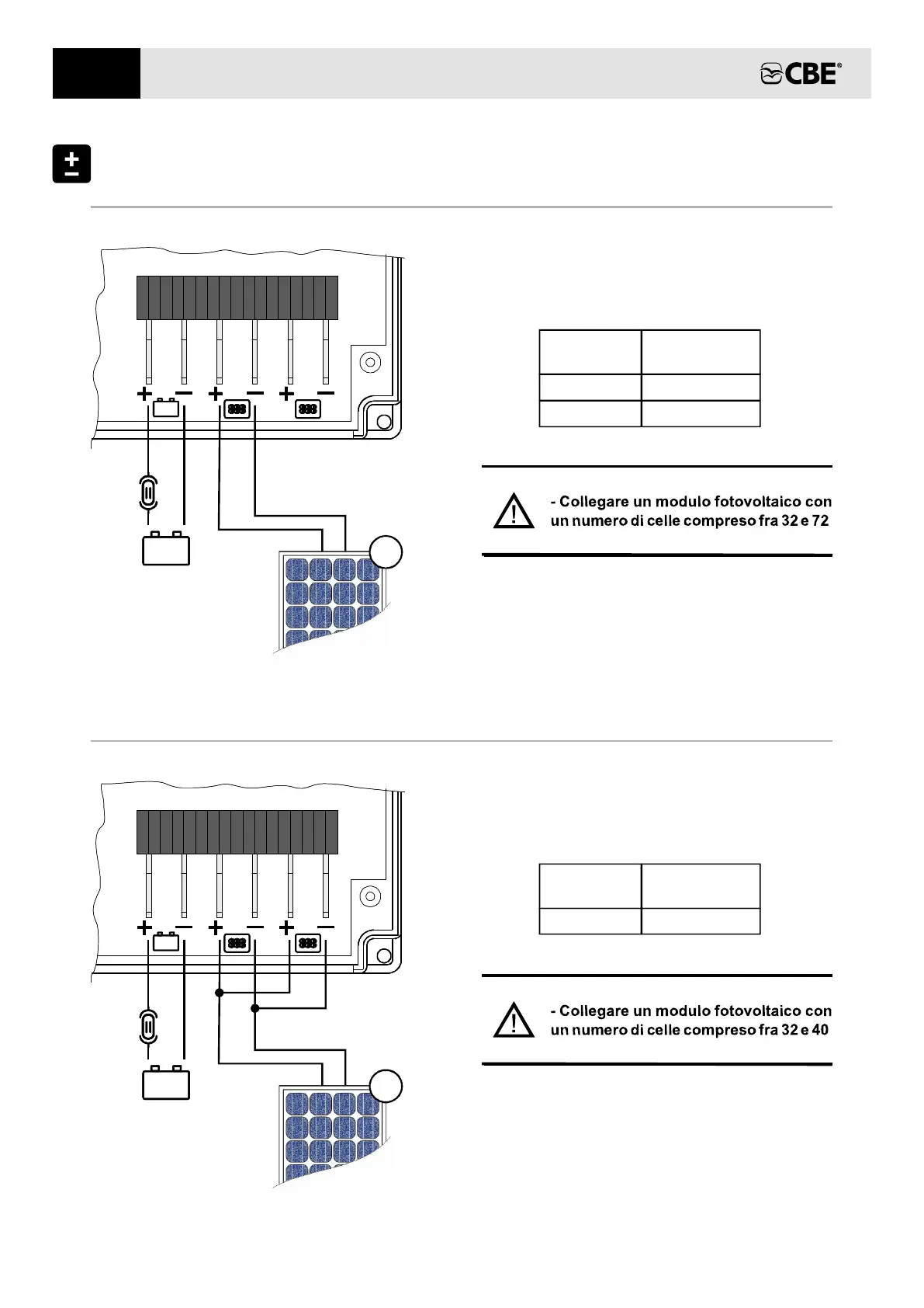 CBE PRM350 - Esempi Collegamenti Moduli Fotovoltaici