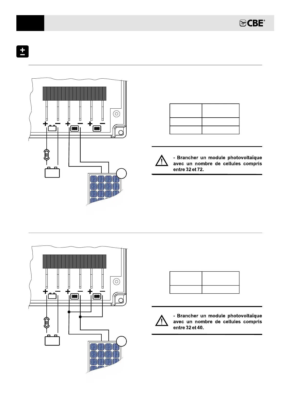 CBE PRM350 - Exemples Branchements Modules Photovoltaïques