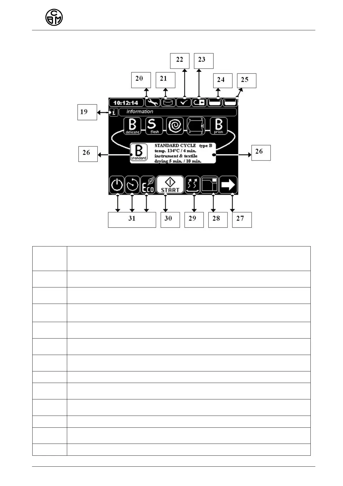Cycle start key – START, it locks completely the door and starts the selected