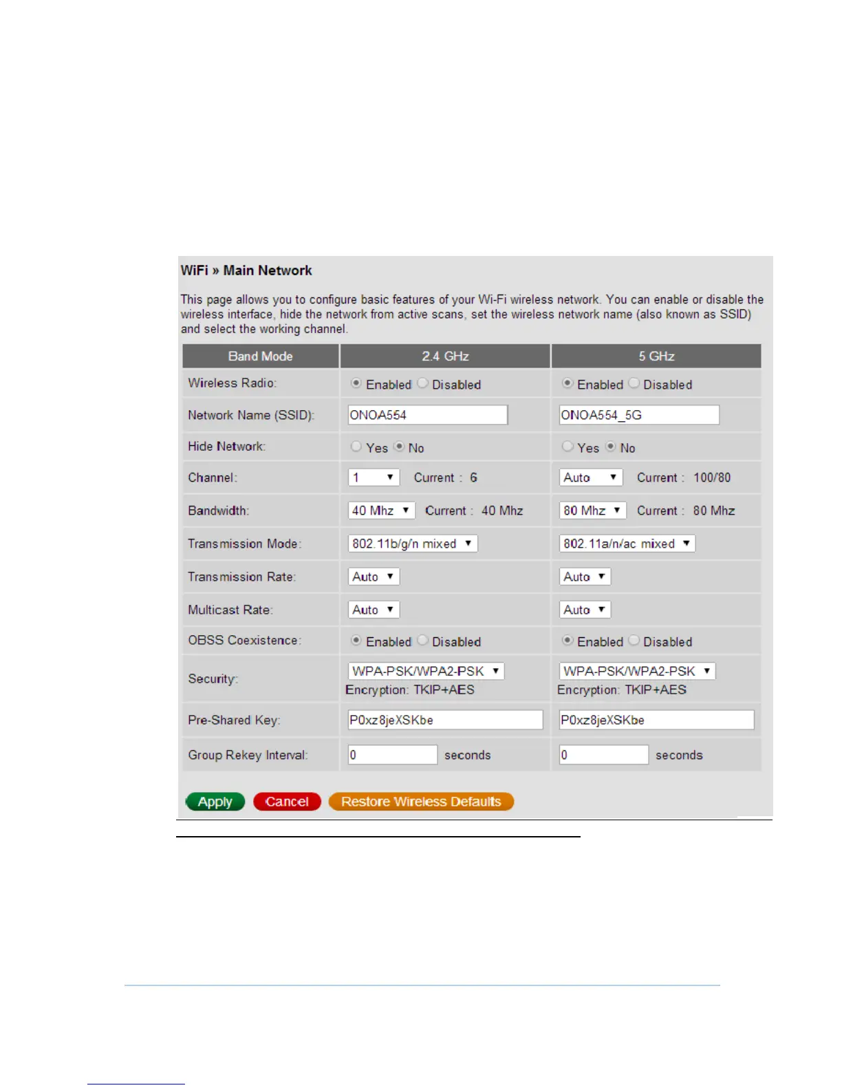 CG7486E is a dual band product and all the basic settings of 2.4GHz and 5GHz