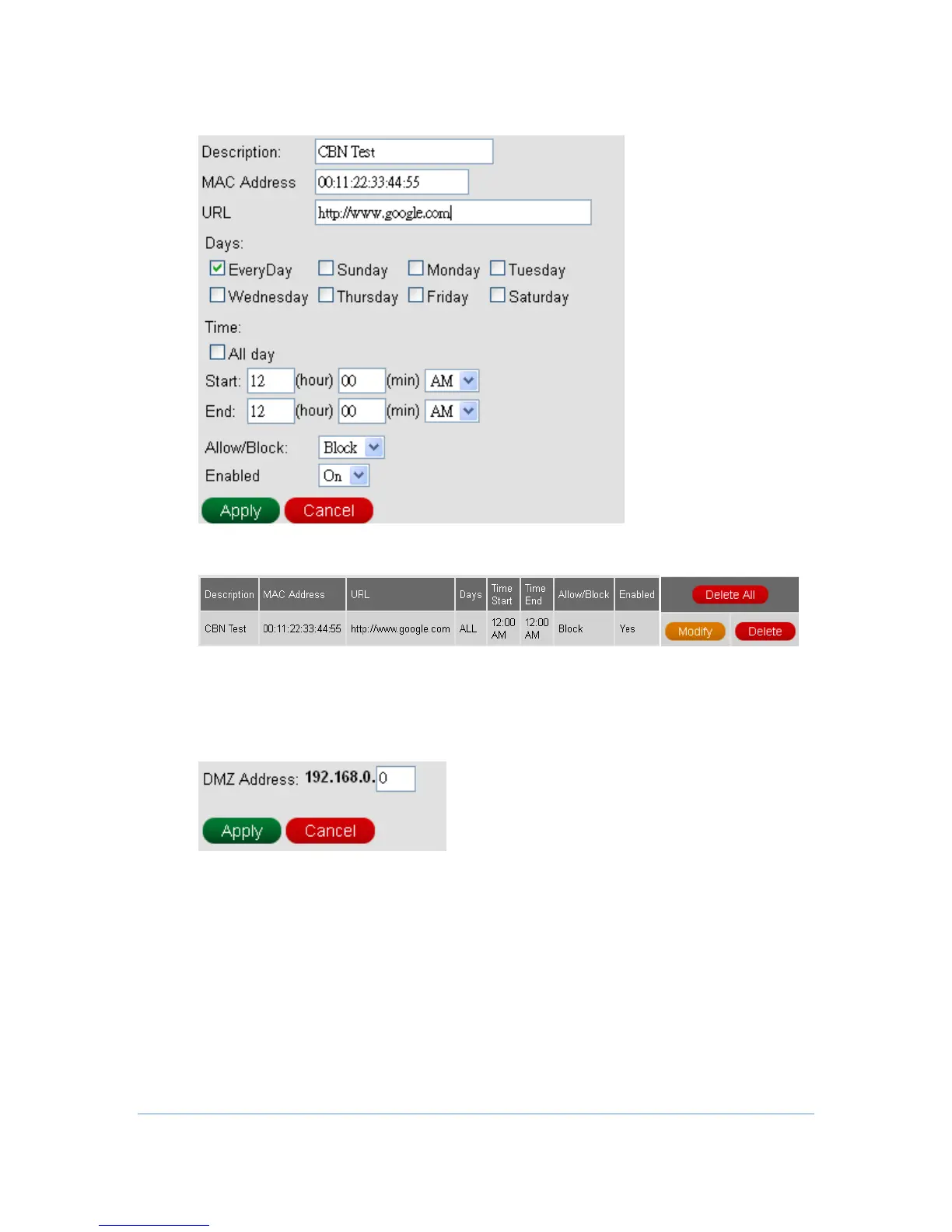 2. Configure outbound information and then press Apply button.