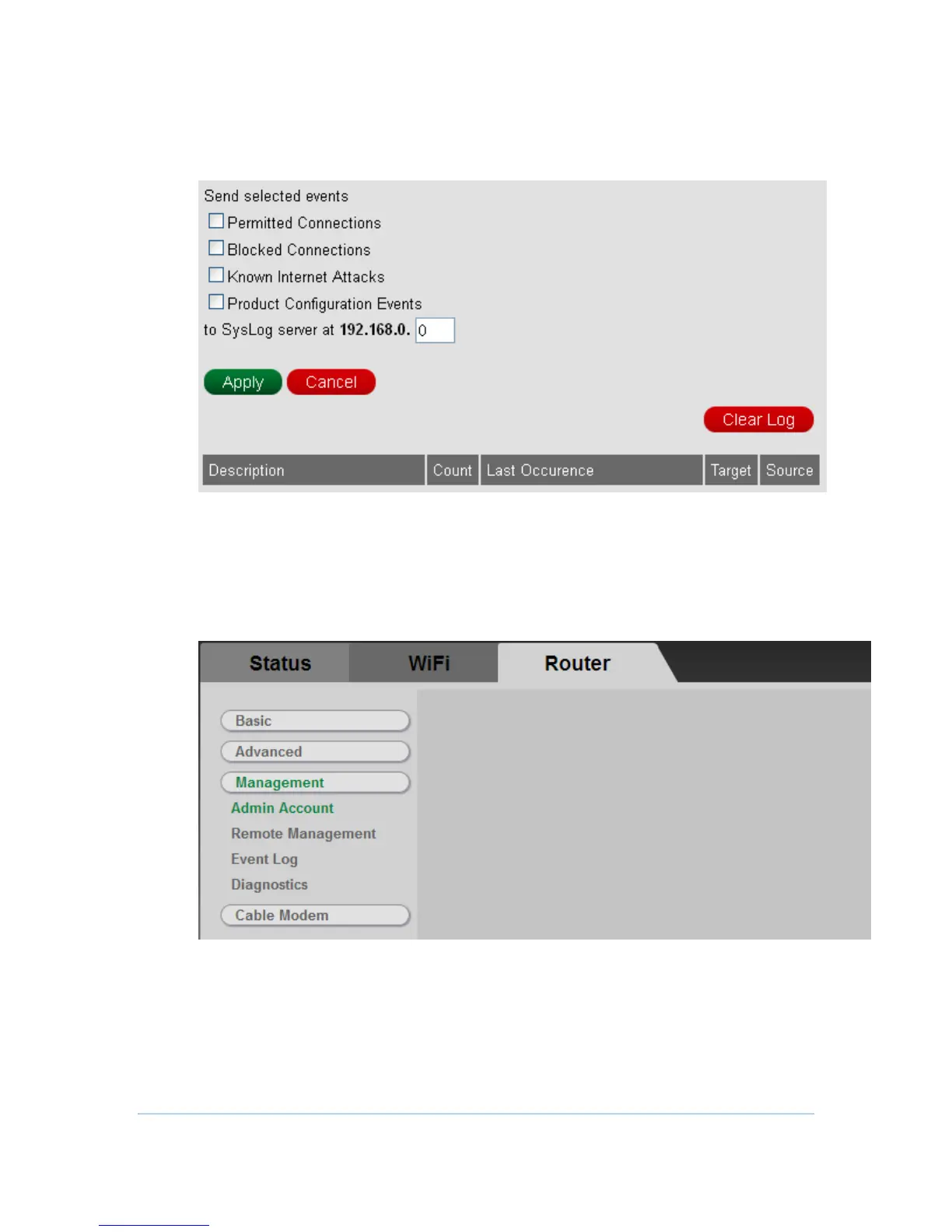This page allows optional configuration of events to be sent to a local SysLog server.