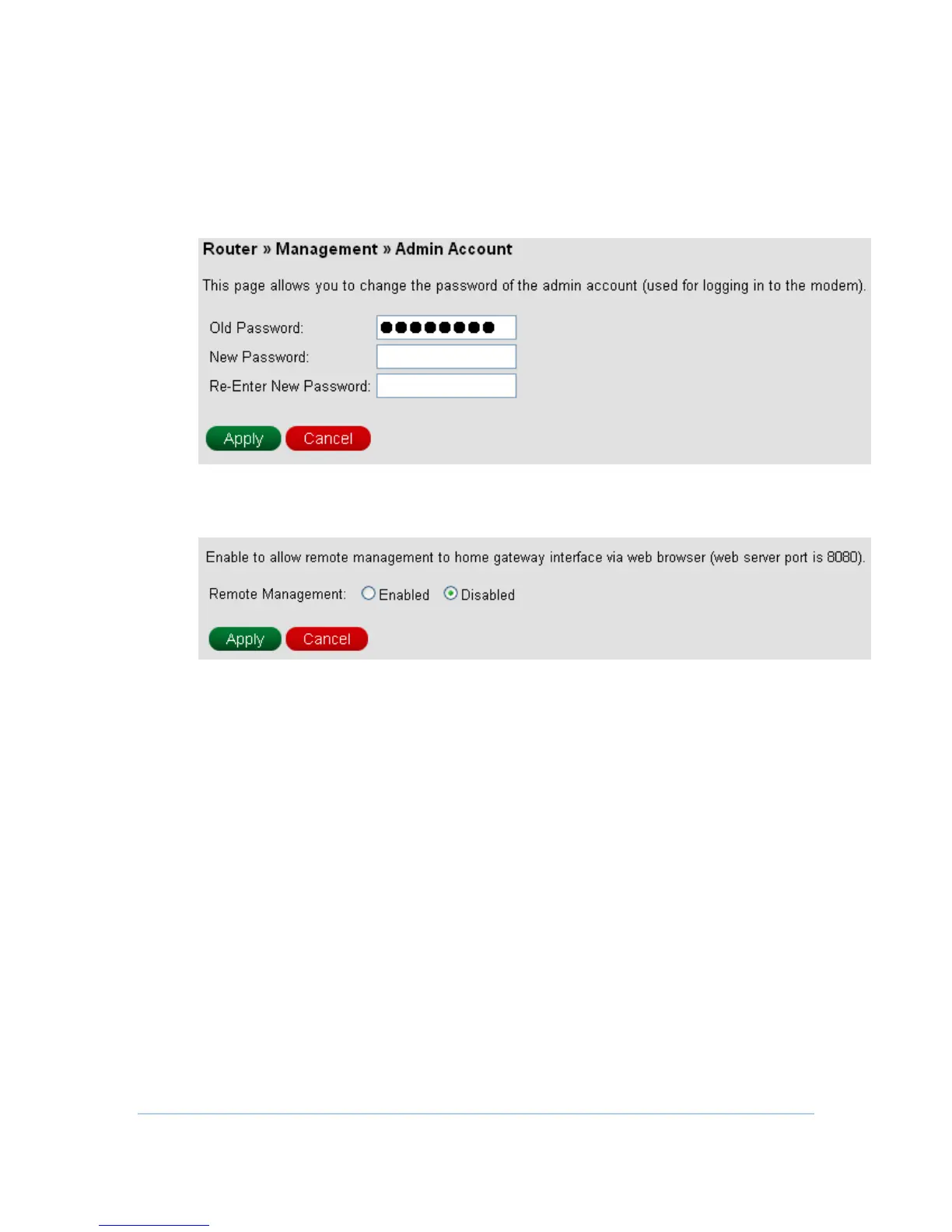 CG7486E allows changing admin password for web browser login. Configure