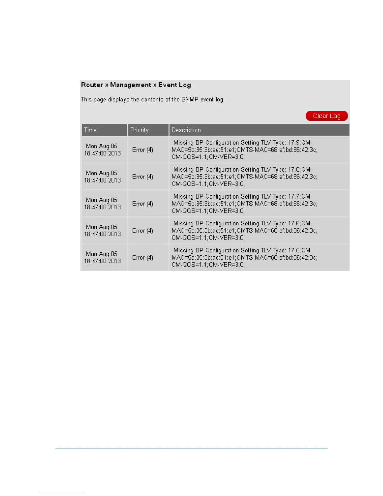 SNMP event log. Also, users can press Clear Log button to clean all records.