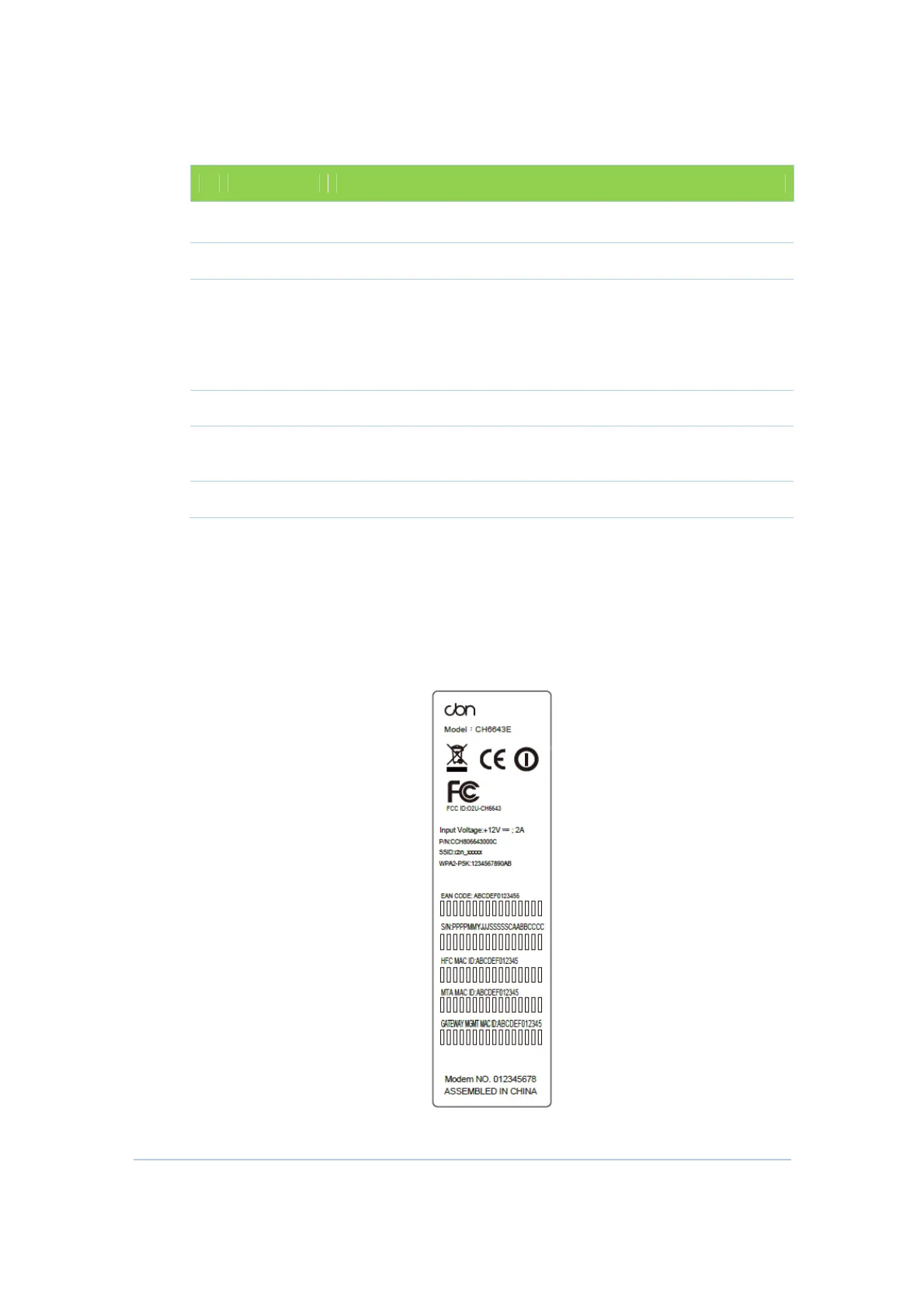 The CH6643E Media Access Control (MAC) label is located on the bottom of the