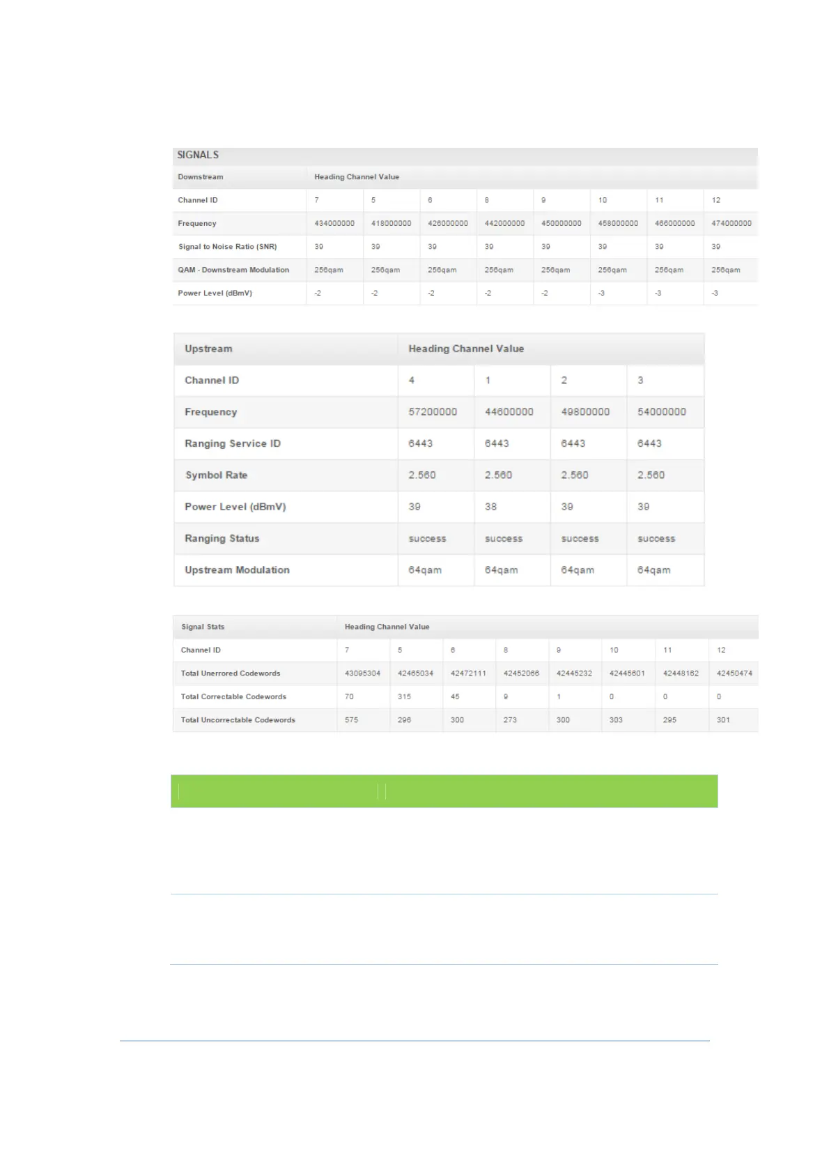 upstream signal power and modulation.