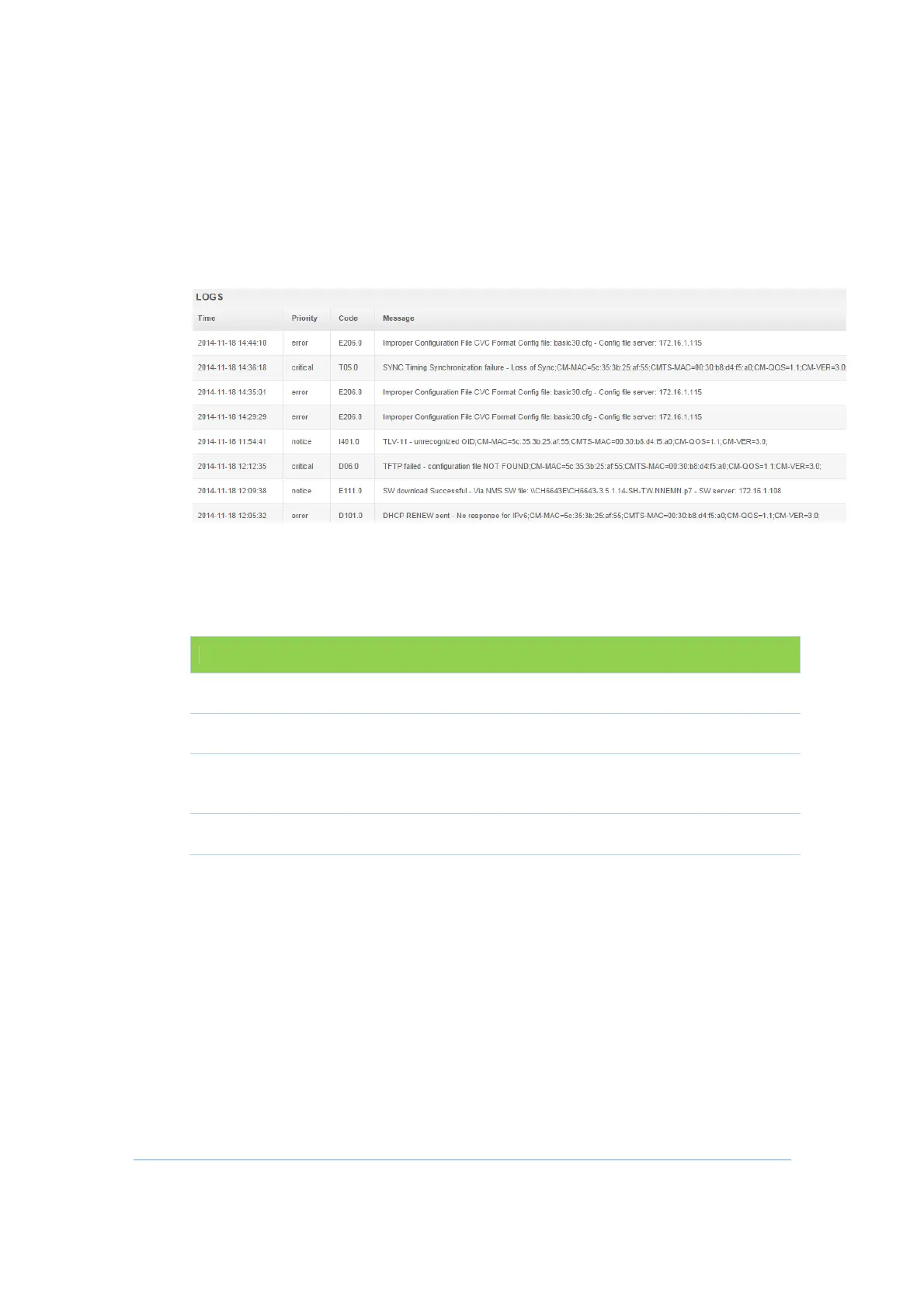 CABLE MODEM Logs Section