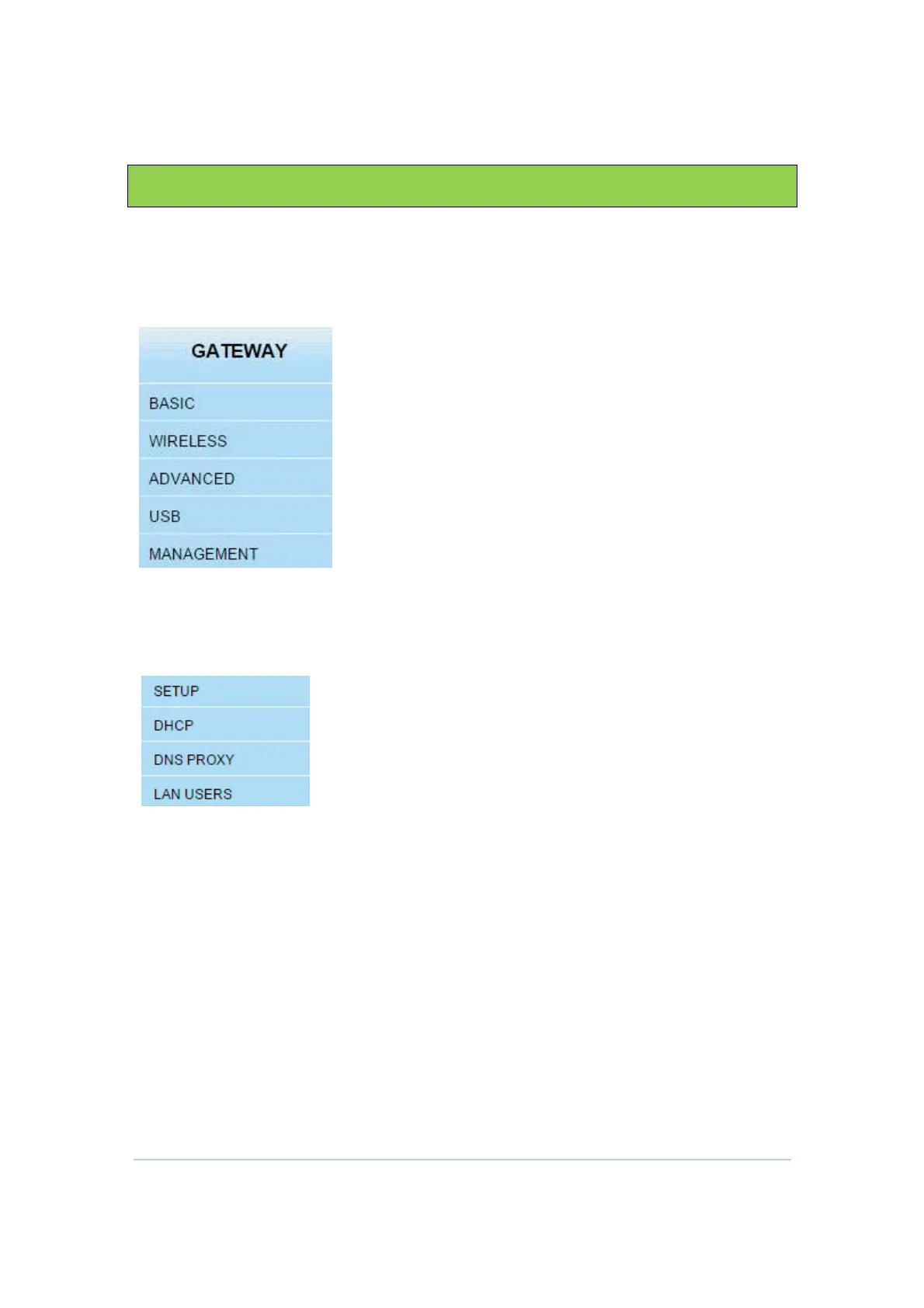 CH6643E GATEWAY section provide six major items including BASIC Setup, WIRELESS,