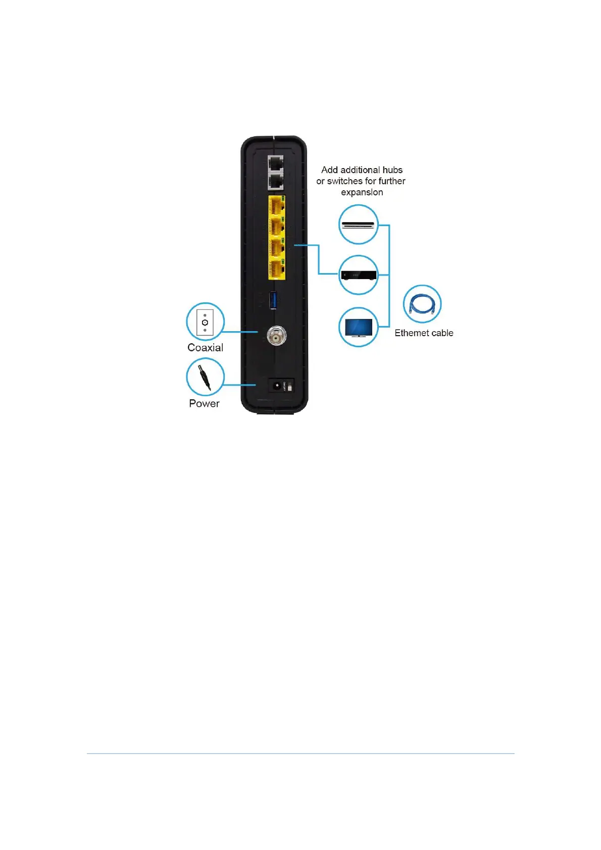 Use Ethernet hubs, switches, or routers to connect up to any combination of